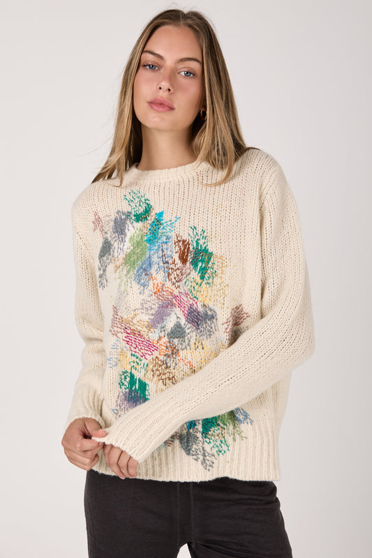 Star Dust Effect Off Gauge Pullover Sweater in Nero