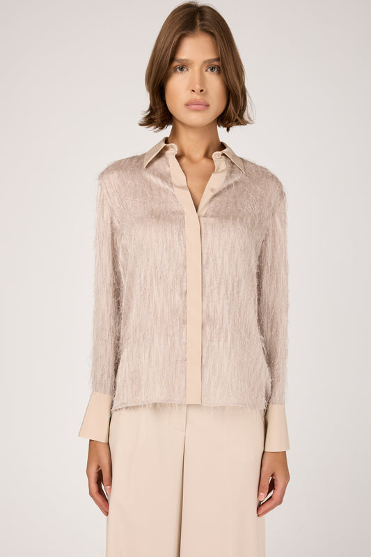 The PESERICO Fil Coupé Jacquard Shirt in Amber Beige showcases exquisite Italian craftsmanship and refined...