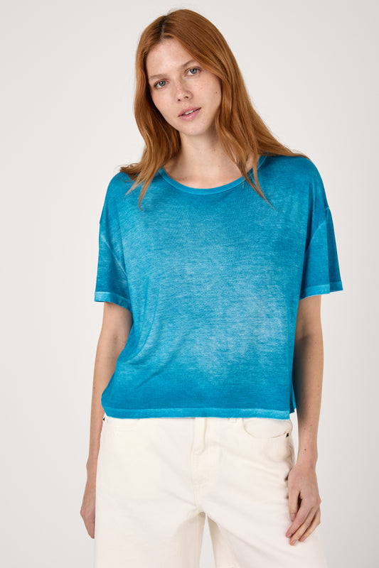 Hand Painted Cropped T-Shirt in Topazio