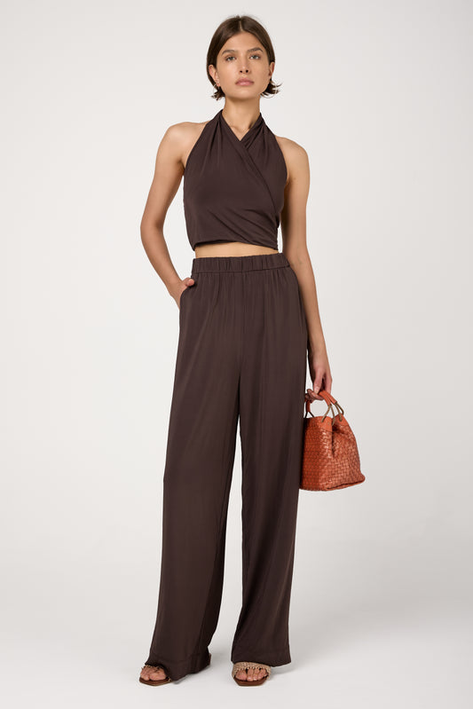 Savio Crepe Jersey Pants in Coffee