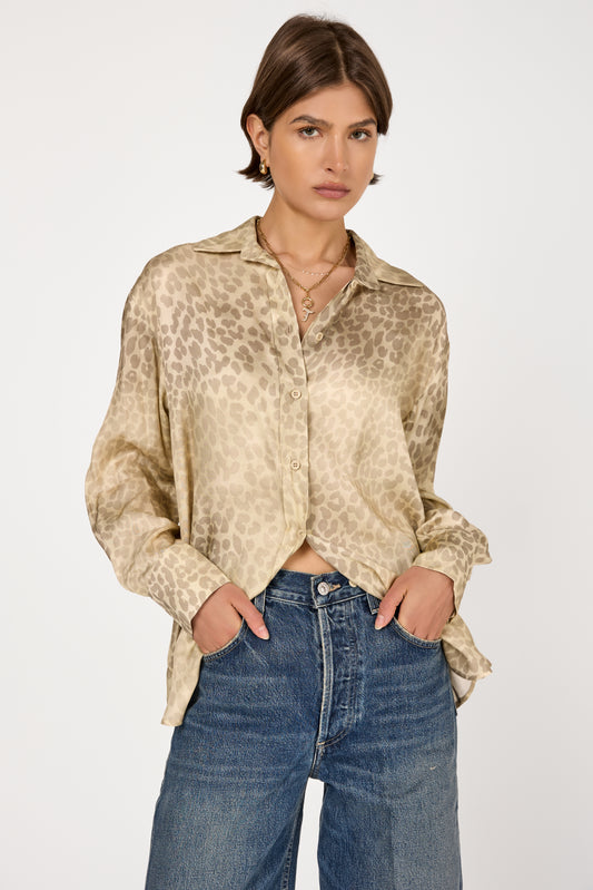 (nude) Long Sleeve Printed Shirt in Straw. The epitome of elegance crafted from a soft...