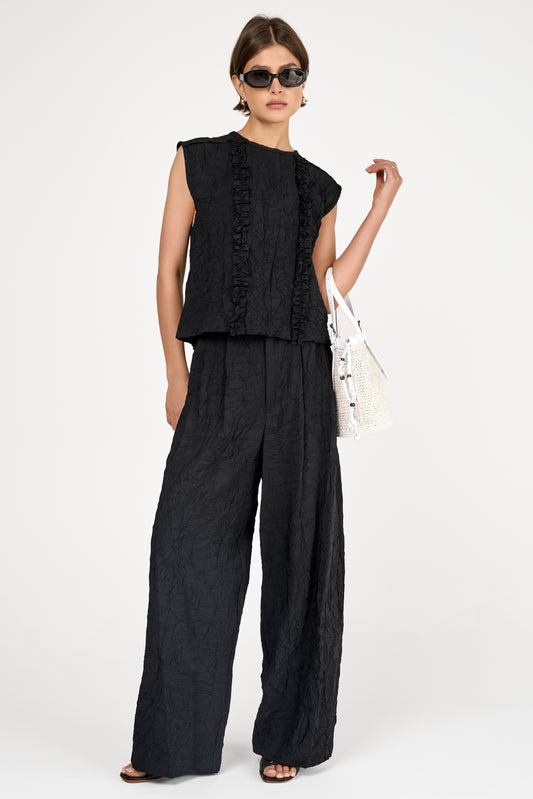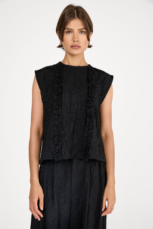 Sleeveless Crinkled Top in Black