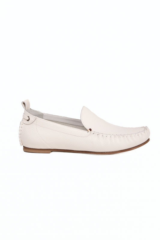 HENRY BEGUELIN Leather Moccasin Shoe in Muflone Gesso. Classic slip-on moccasin design featuring a rounded...