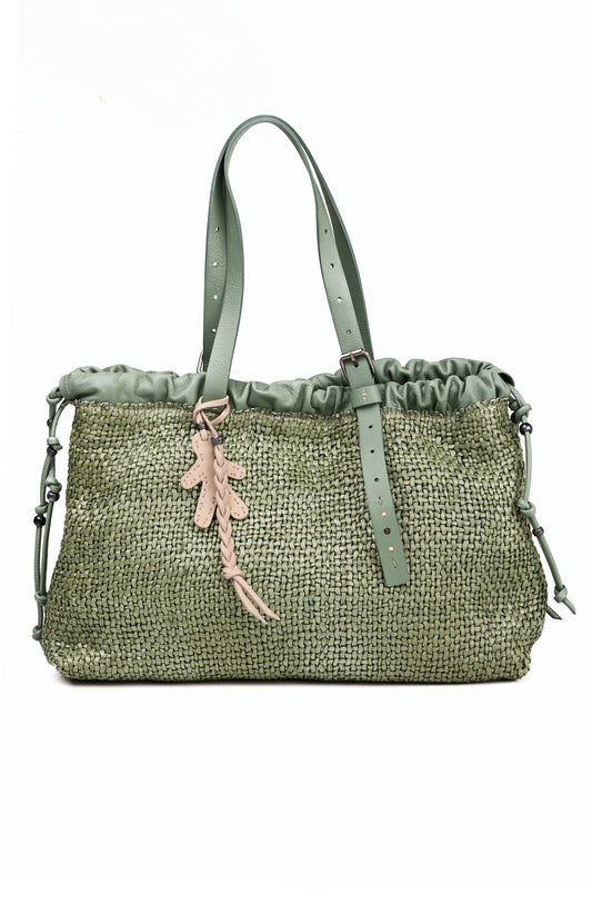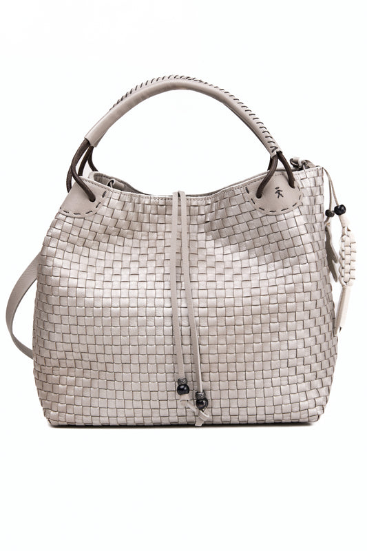 HENRY BEGUELIN Woven Intreccio Leather Arricciata Bag in Madreperla Agave. Shopping shoulder bag design with...