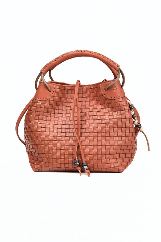 Daria Woven Intreccio Leather Bag in Dama Lamination Caramel