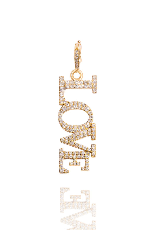L.A. STEIN Diamond Vertical LOVE Pendant in 14k Gold. 2.4cts diamond; 16.42 gms gold.