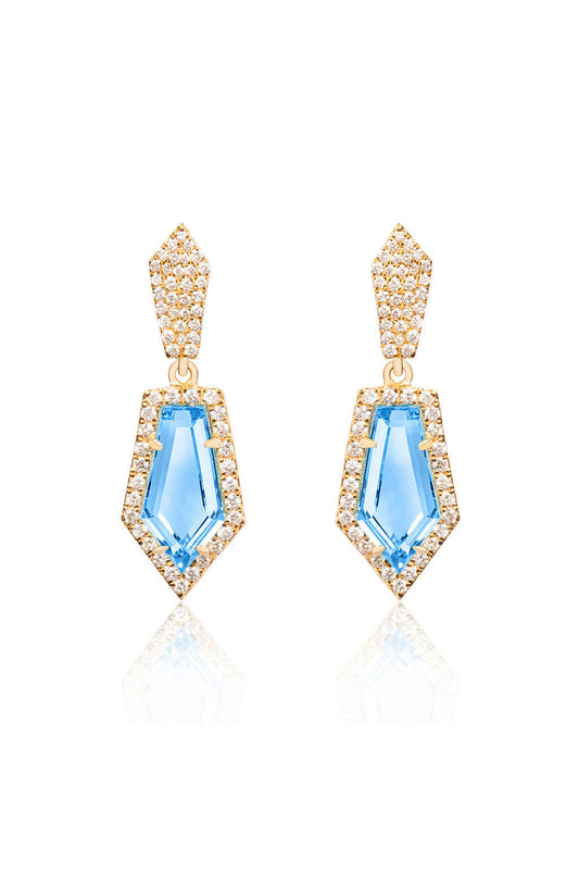 Blue Topaz Diamond Kite Earrings in 18k Yellow Gold