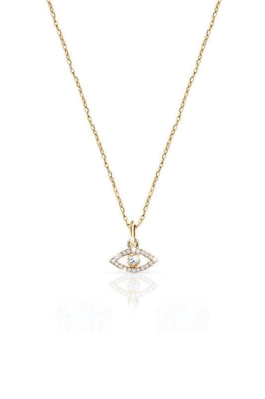 Mini Diamond Evil Eye Necklace in 14k Yellow Gold