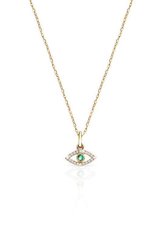Mini Emerald Evil Eye Necklace in 14k Yellow Gold