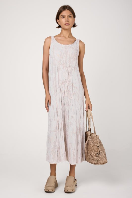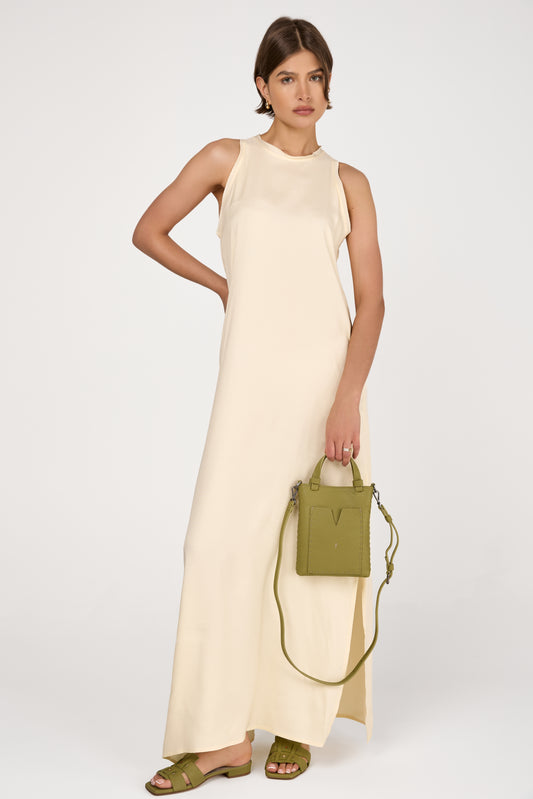 TANDEM Sleeveless Midi Dress in Sand. Made in Italy.