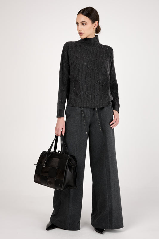 PESERICO Cable Knit Sweater in Graphite. Traditional craftsmanship yet modern design made from a luxurious blend...