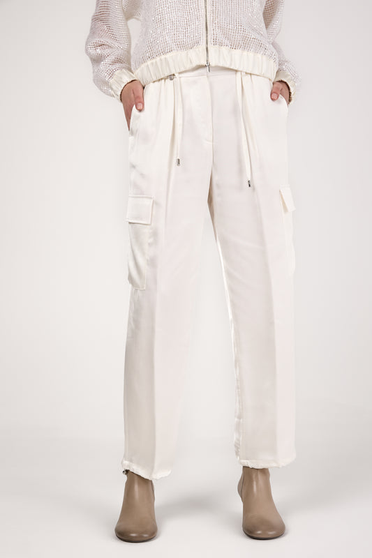Viscose Satin Cargo Pant in Natural White
