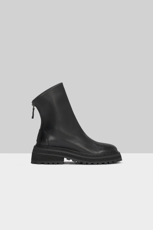 The MARSÈLL Carro Leather Ankle Boot in Black combines luxury and edge. Handmade in Italy,...