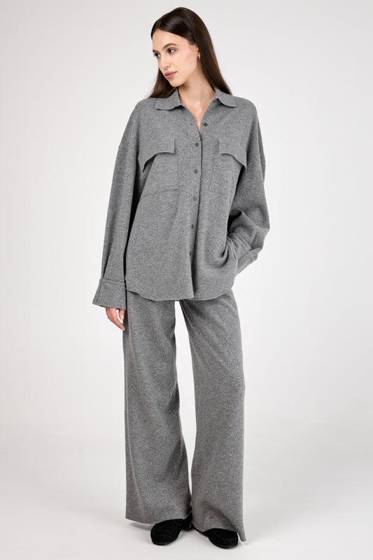 (NUDE) Virgin Wool Felt Wide Leg Pant in Grey. Wide leg pant made of Virgin...