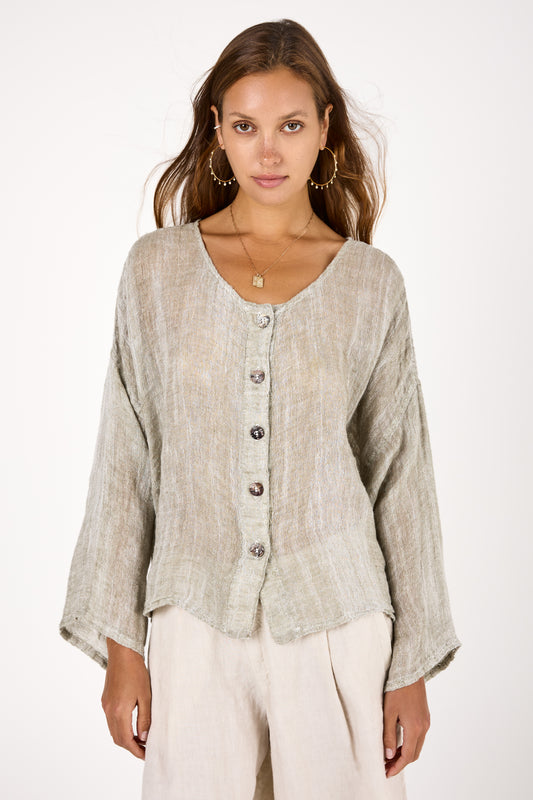 Long Cotton Cardigan Hole Stitch with Lamination in Husky