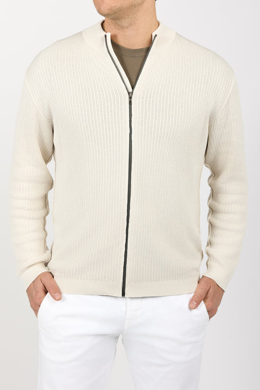 Ribbed Cotton Zip-Up Cardigan in Ice