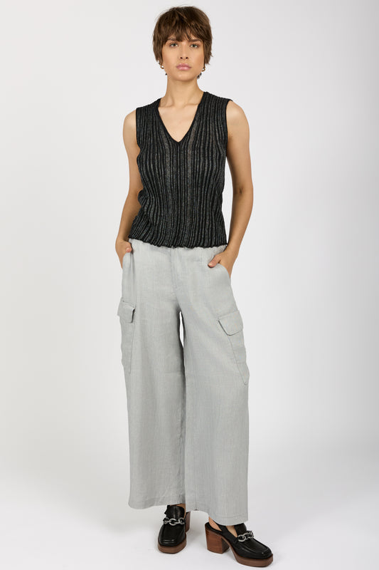 Linen and Cotton Knit Cardigan in Pearl Grey