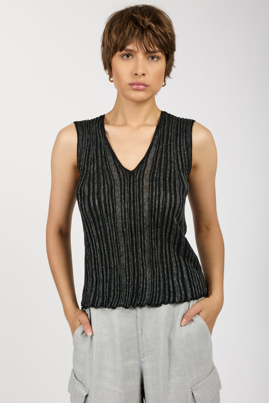The TRANSIT Ribbed Cotton Viscose Top in Black offers a sleek, modern look with a...