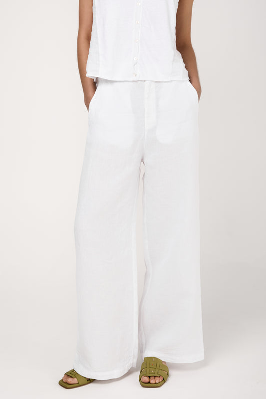 BOTTEGA DI BRUNELLA Pantalone Tritone Tela Uffizi Linen Pant in Latte. Effortless and chic pull-on...