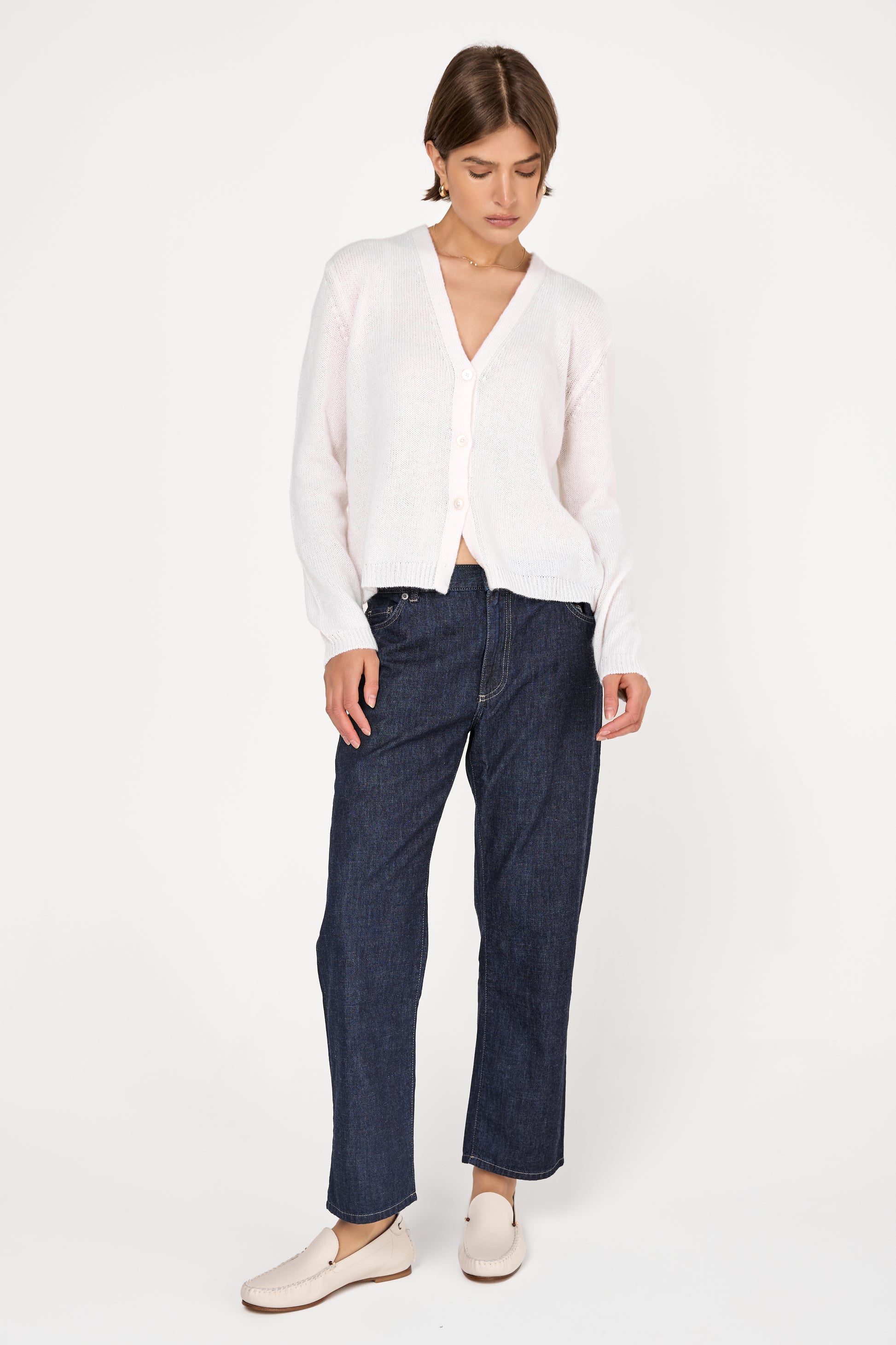PRIVATE 0204 All Year Cashmere Cardigan in White. 100% Cashmere. Made in Italy.