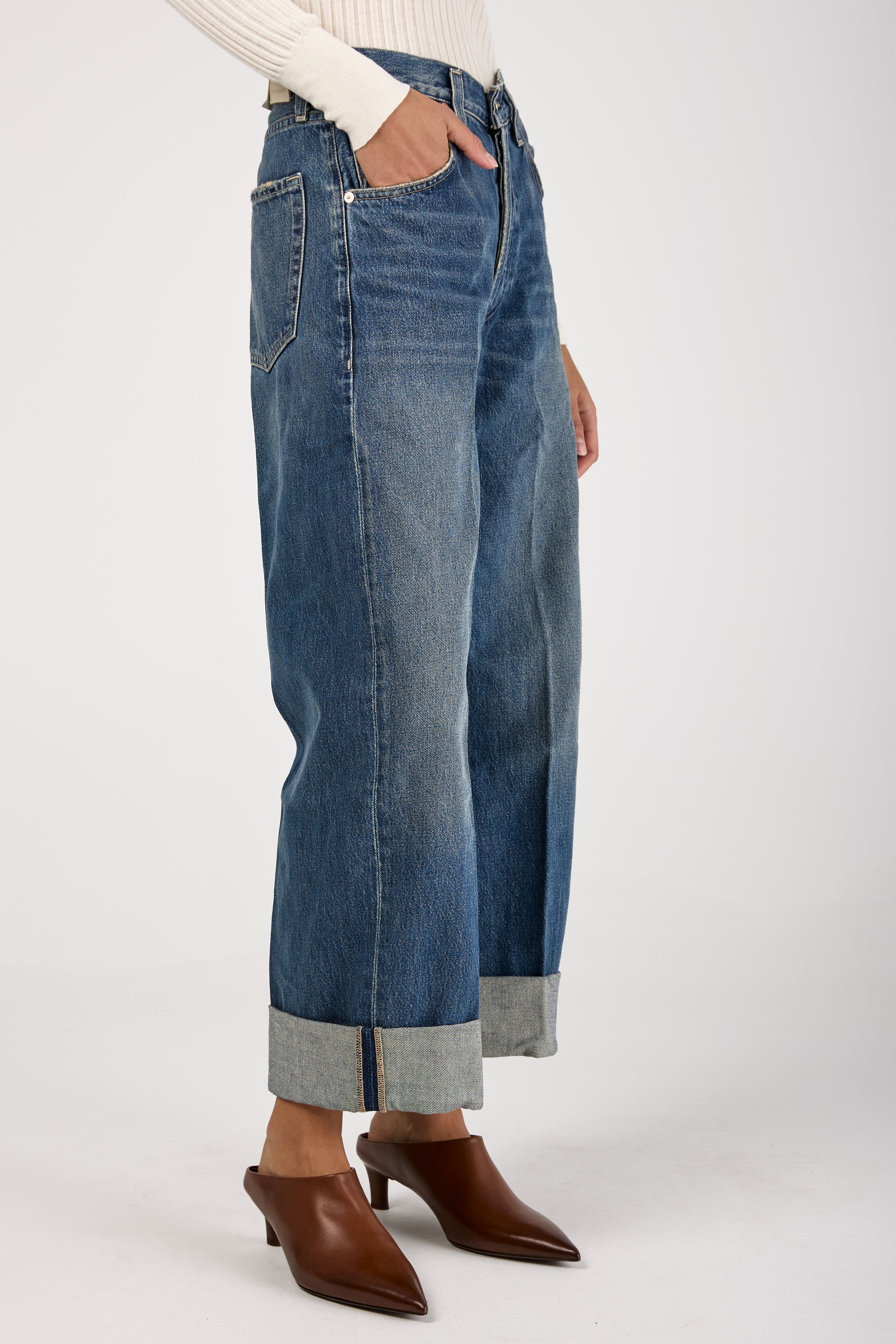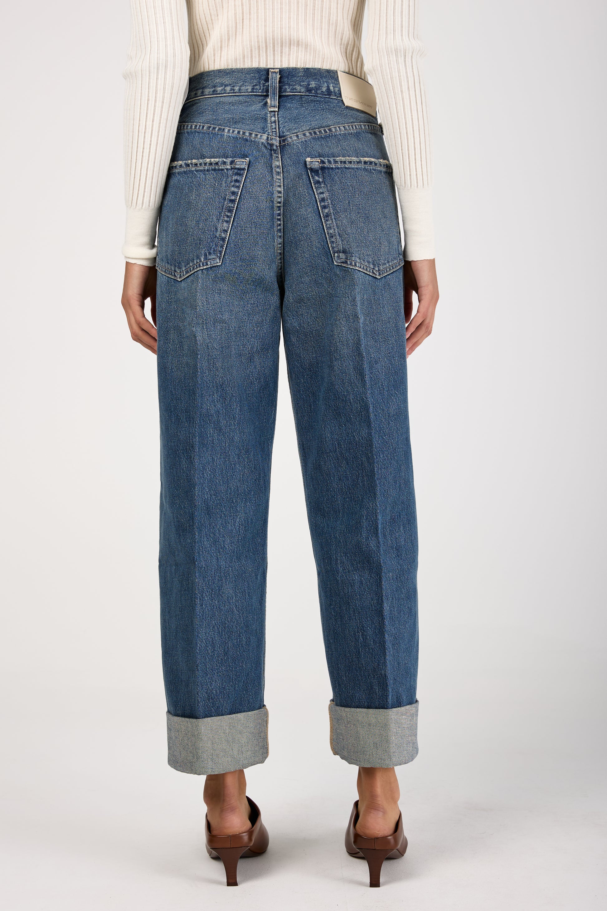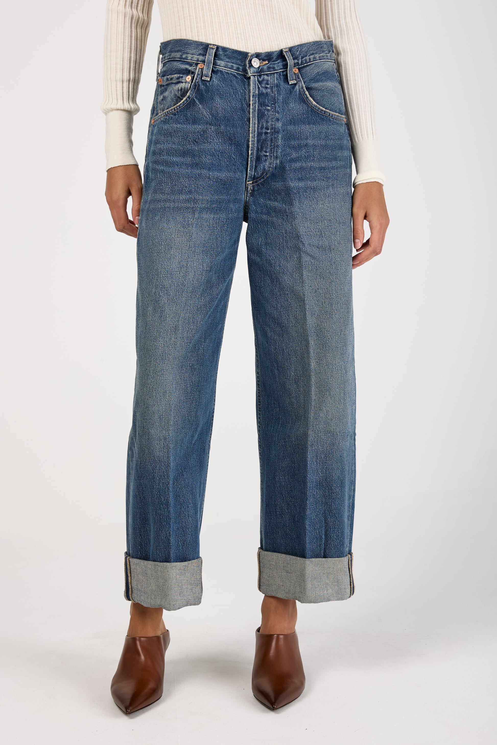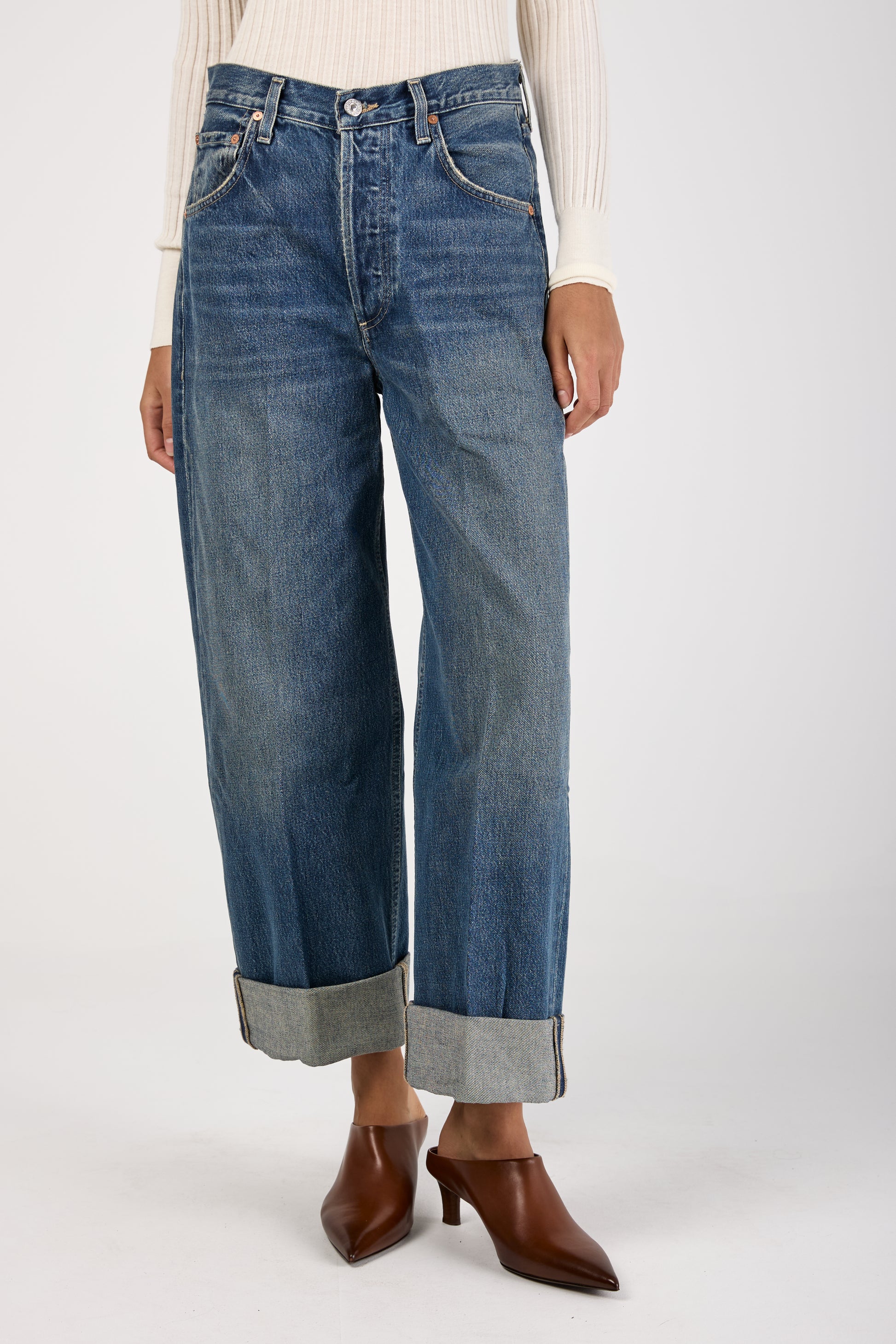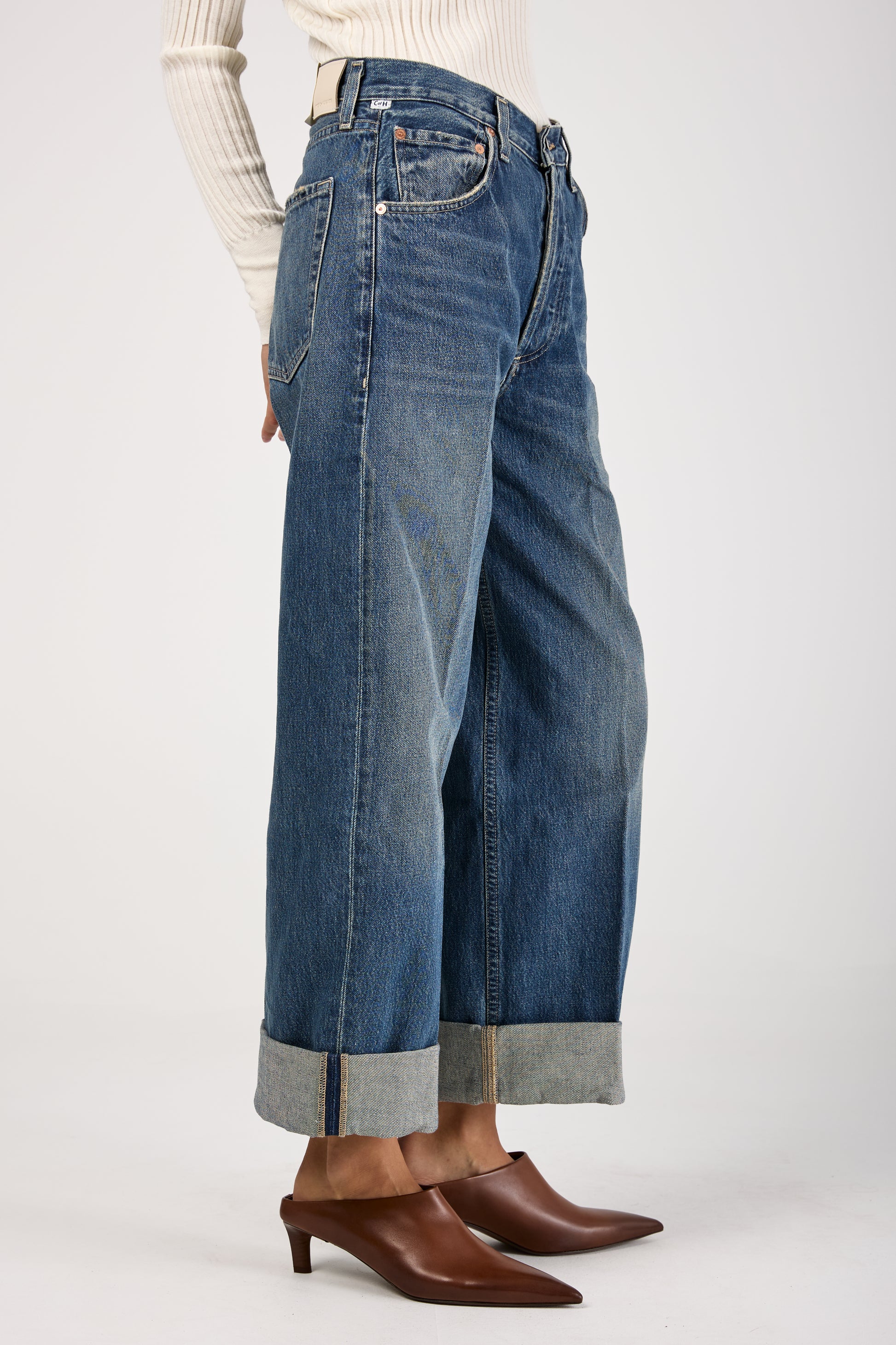 The CITIZENS OF HUMANITY Ayla Baggy Jean in Brielle features a modern twist on a classic vintage silhouette, offering a comfortable and slightly relaxed fit at the top, with a roomy leg that ends in an untacked, cuffed hem, perfect for versatile styling, as the cuffs can also be worn uncuffed.Ā