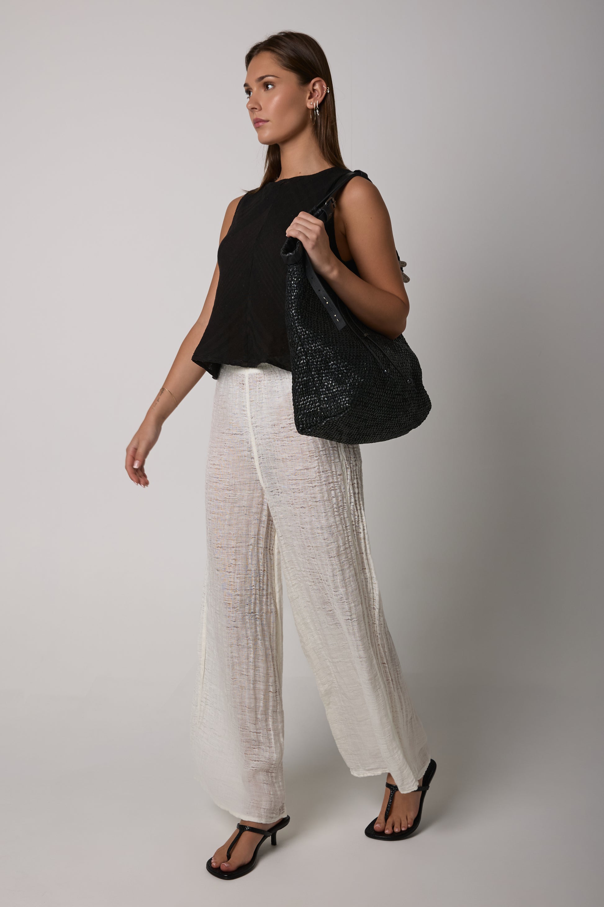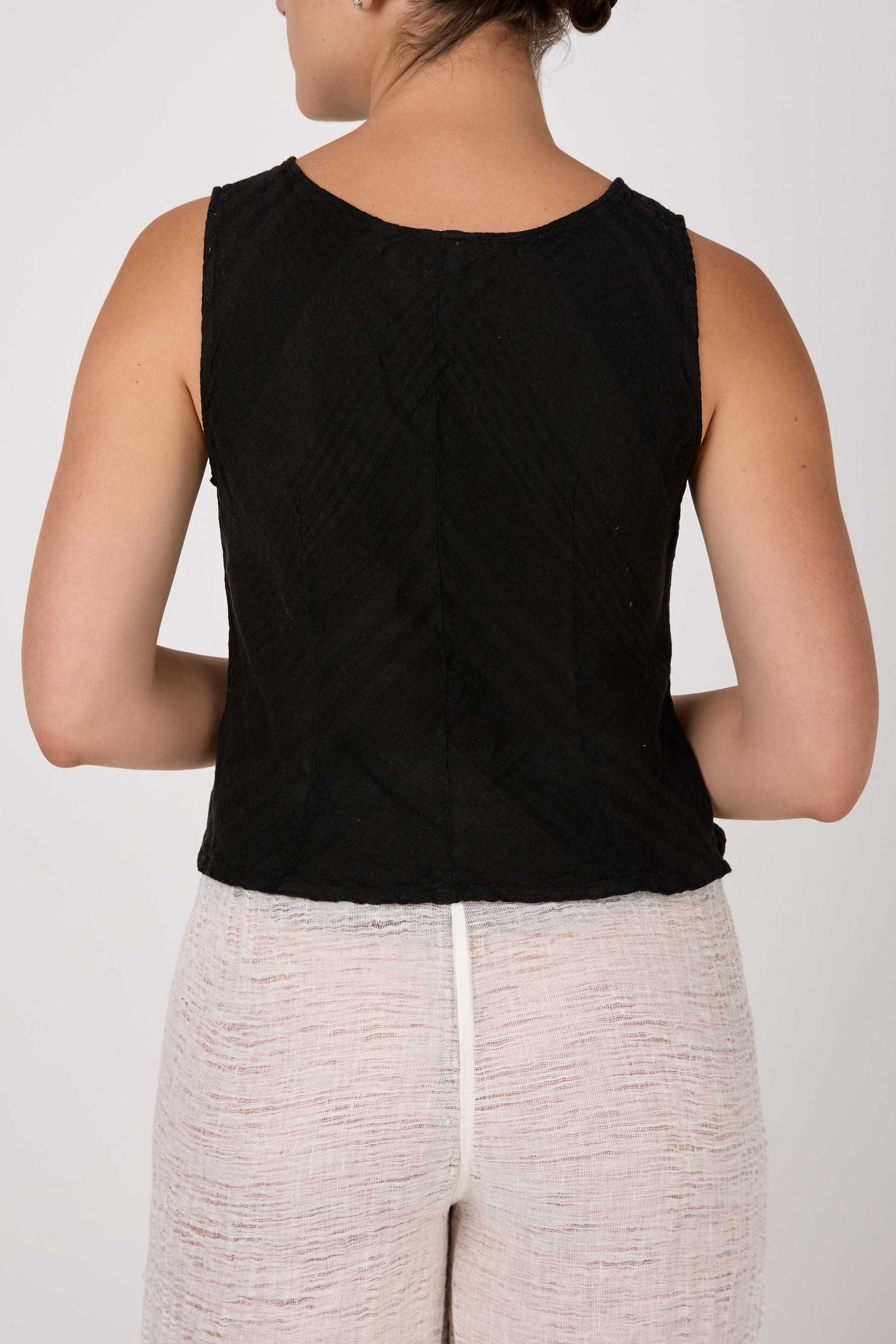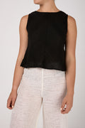 BOTTEGA DI BRUNELLA Picasso Tela Moma Linen Tank Top in Nero. Effortless tank top design made of light-weight linen fabric. Featuring a fluid slightly flared bias-cut silhouette with seam details. Flattering top designed for a casual-chic look.