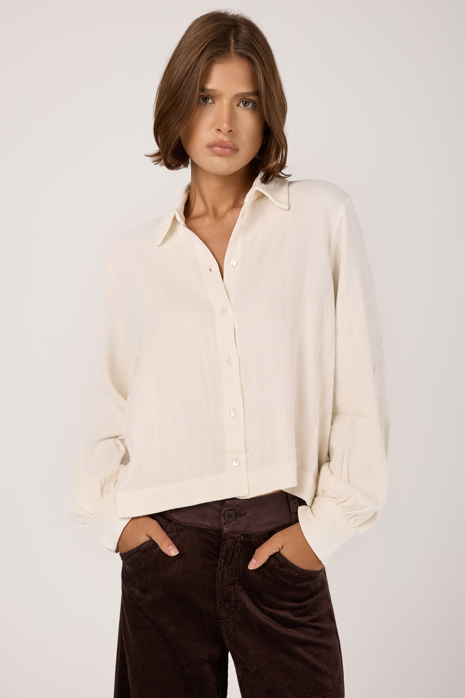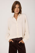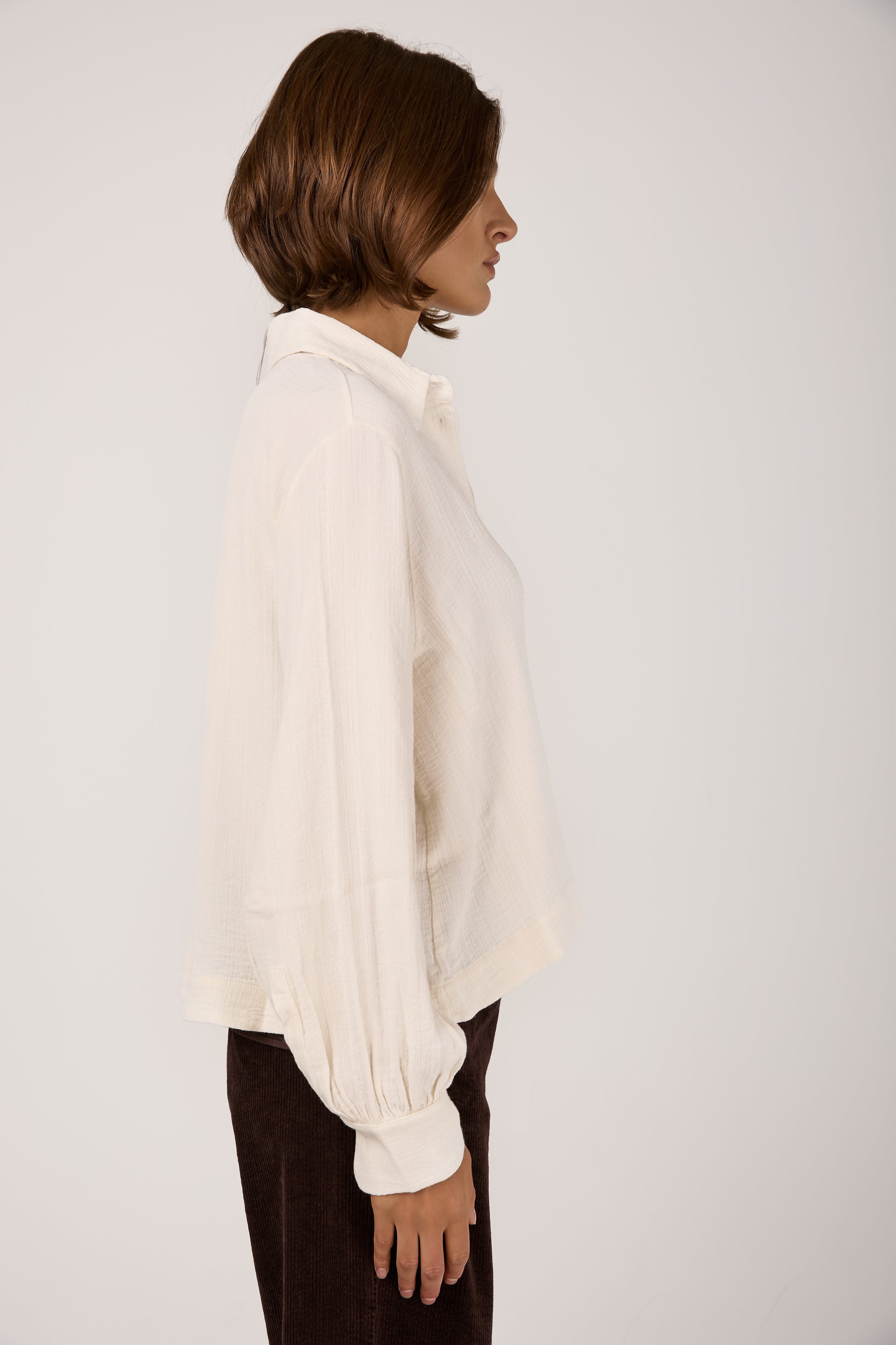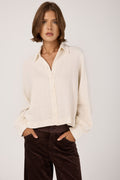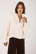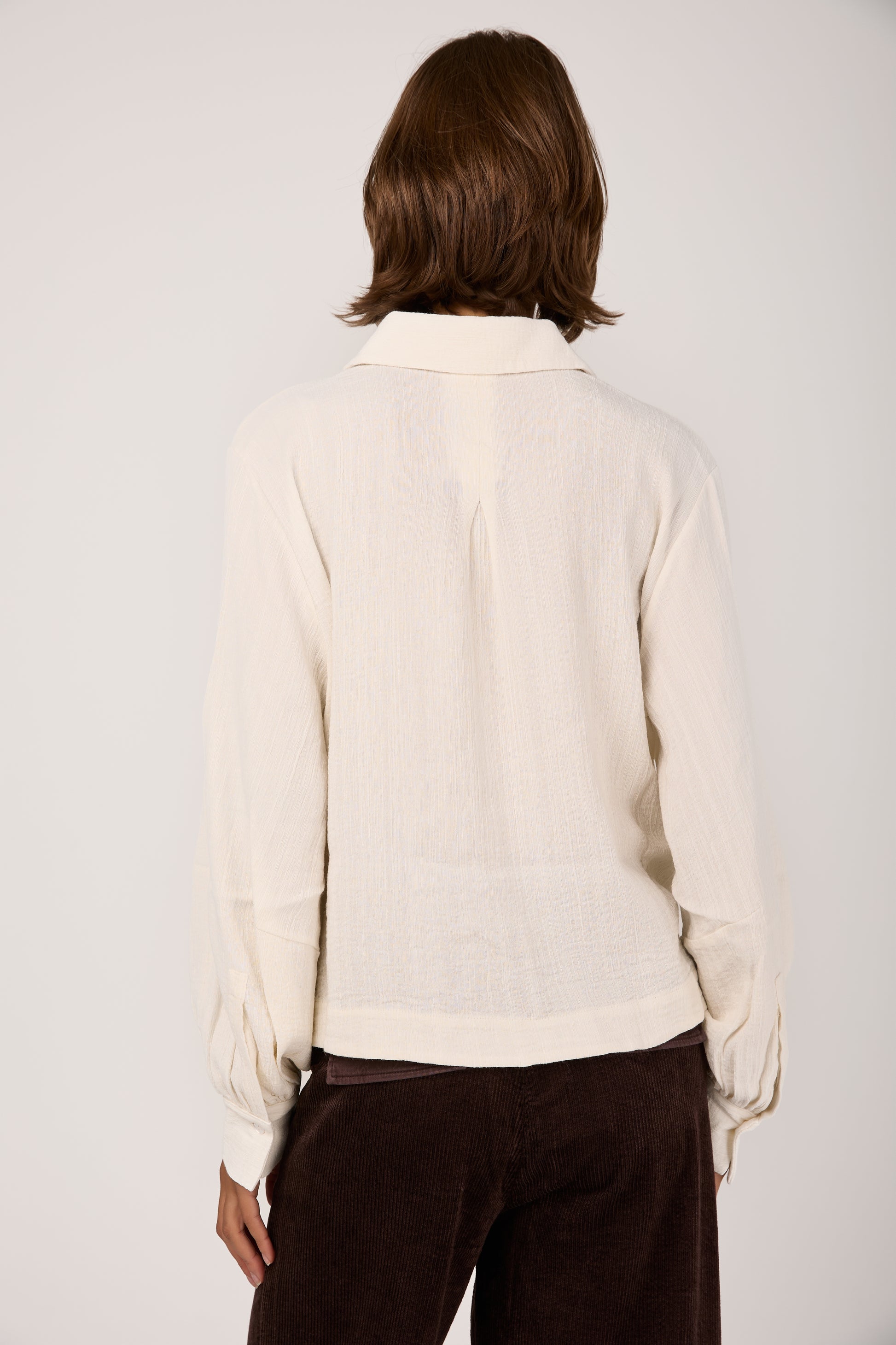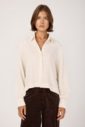 The TANDEM Button Down Shirt in White redefines effortless sophistication with its relaxed yet refined silhouette. Crafted in Italy from a delicately textured fabric that drapes fluidly, it offers a gentle balance between structure and ease. The soft collar and subtly billowed sleeves evoke timeless tailoring, while the minimalist button placket adds a whisper of modern elegance.