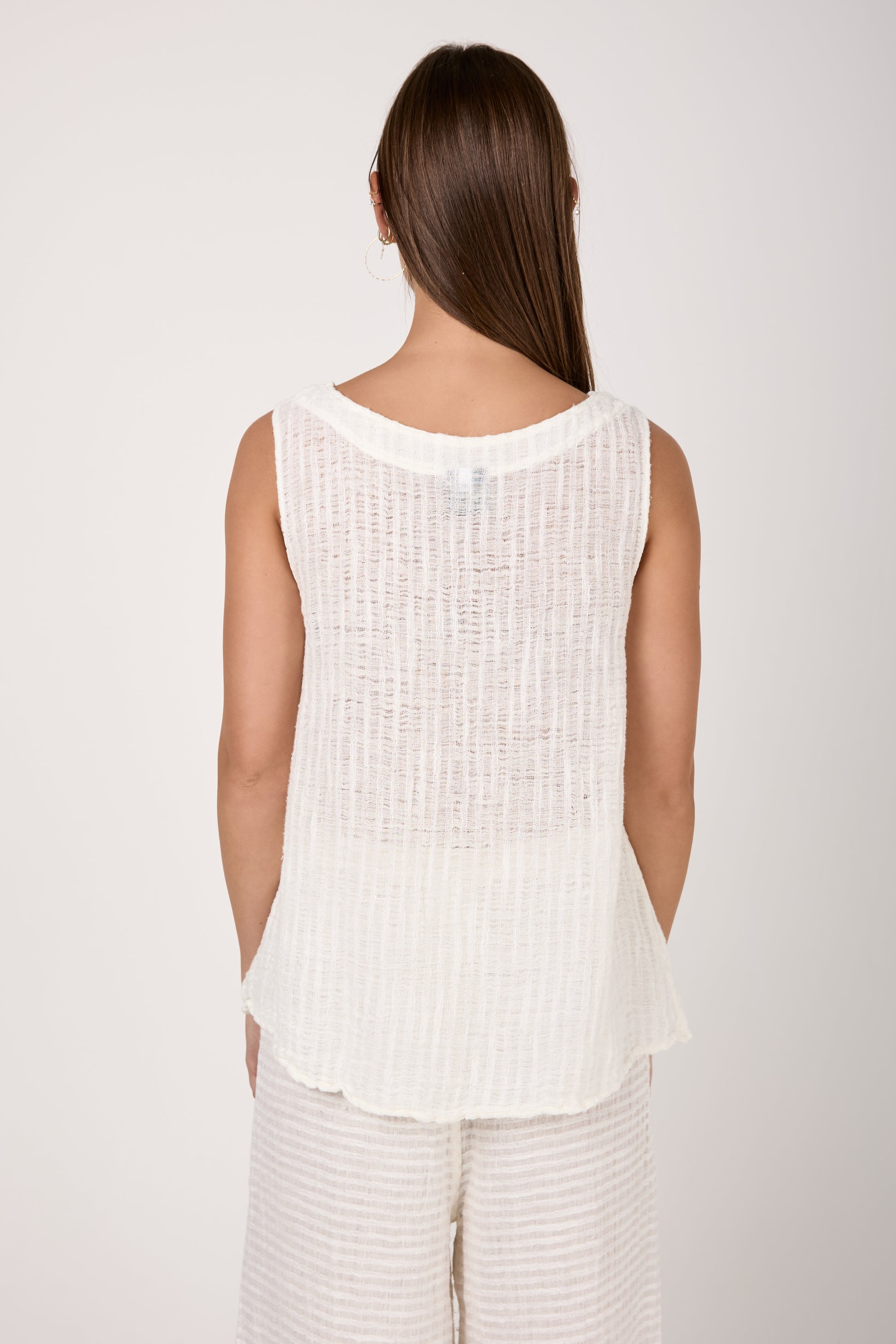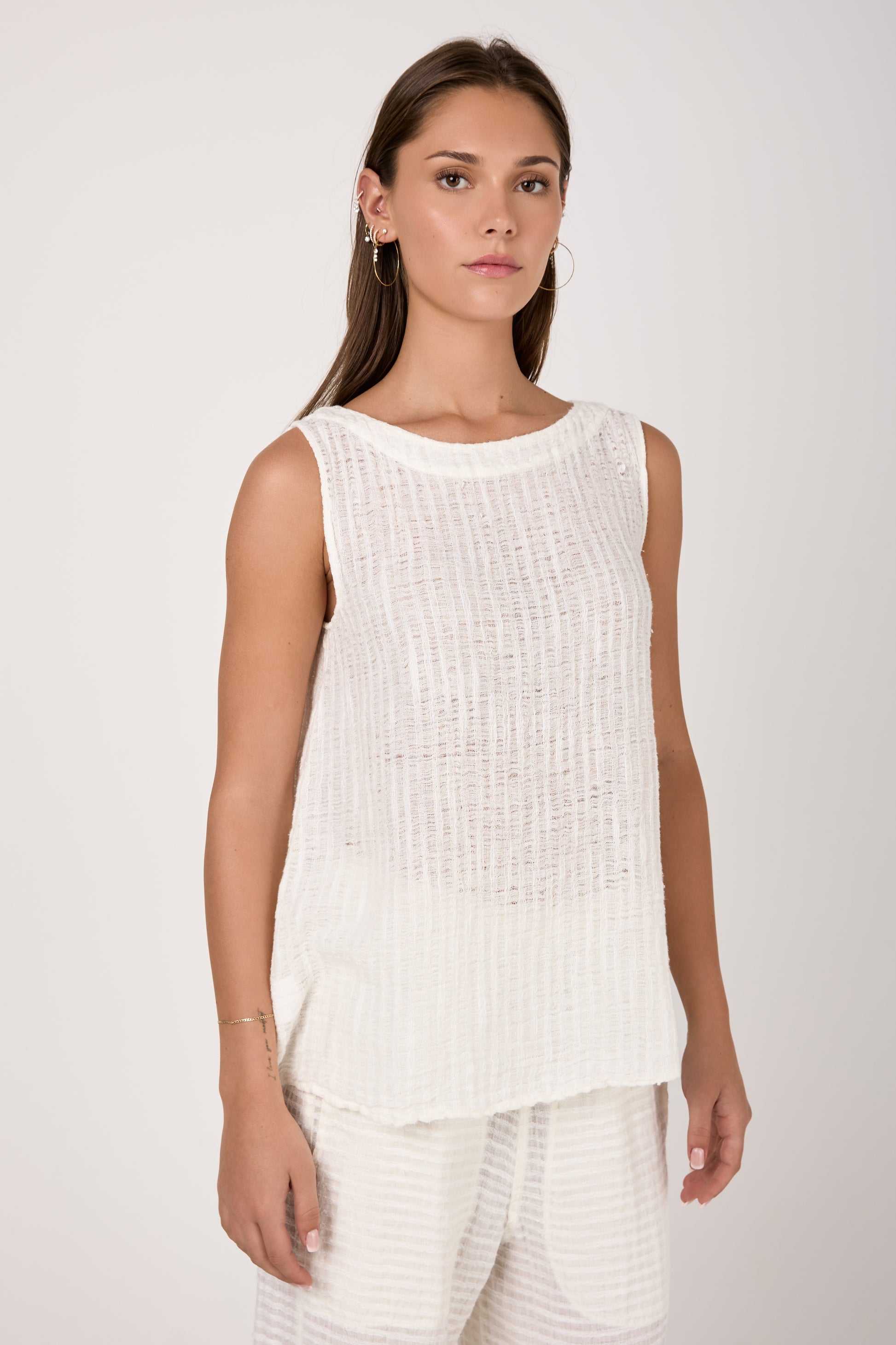 BOTTEGA DI BRUNELLA Canotta Cenacolo Garza Uffizi Linen Tank Top in Latte. Effortless design crafted from lightweight biodegradable linen fabric with a soft texture. Featuring a slightly flared, loose-fitting silhouette offering absolute comfort and style.Ā
