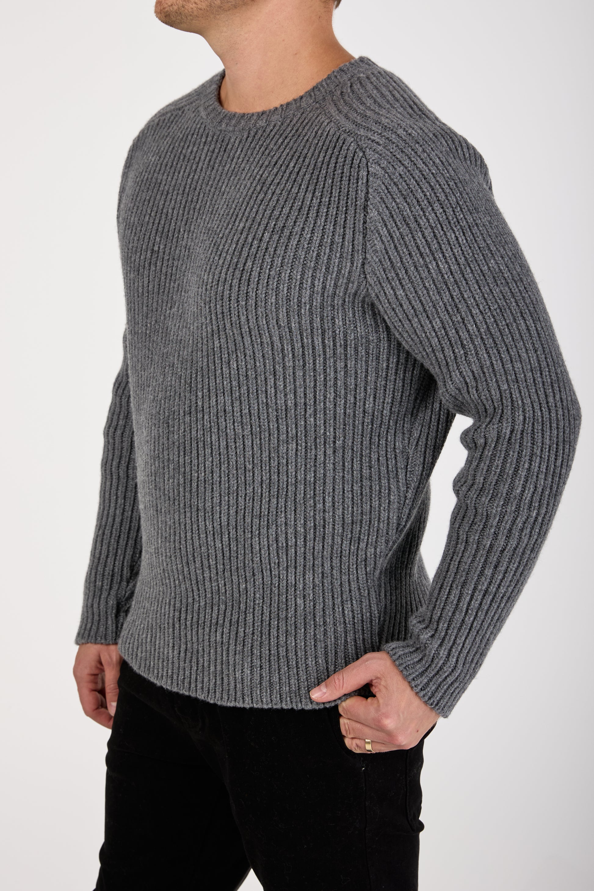 Carded Cashmere Round Neck Sweater in London Bridge