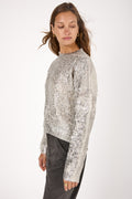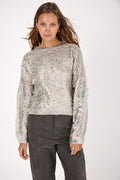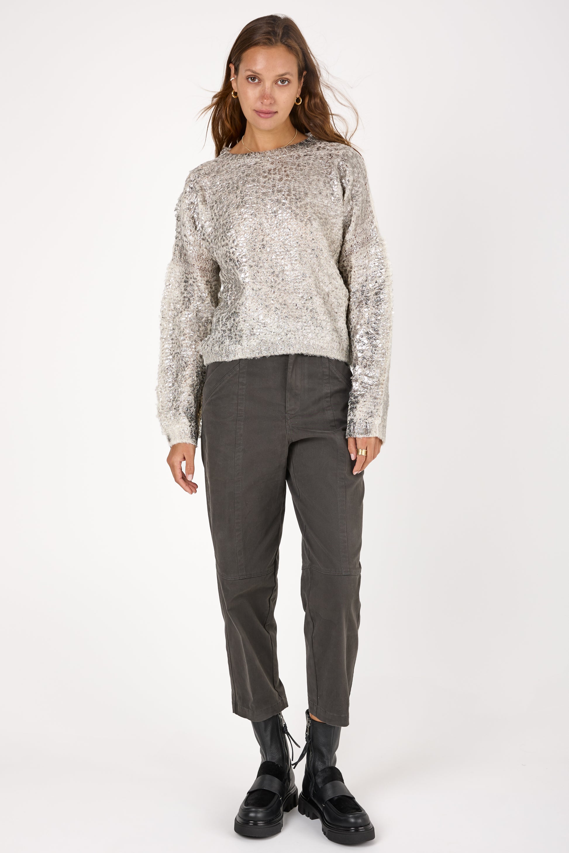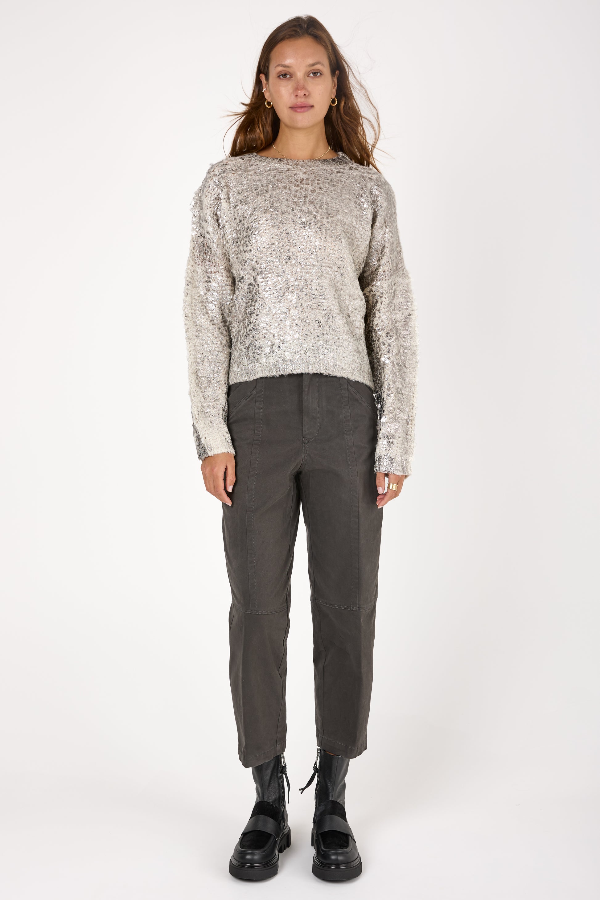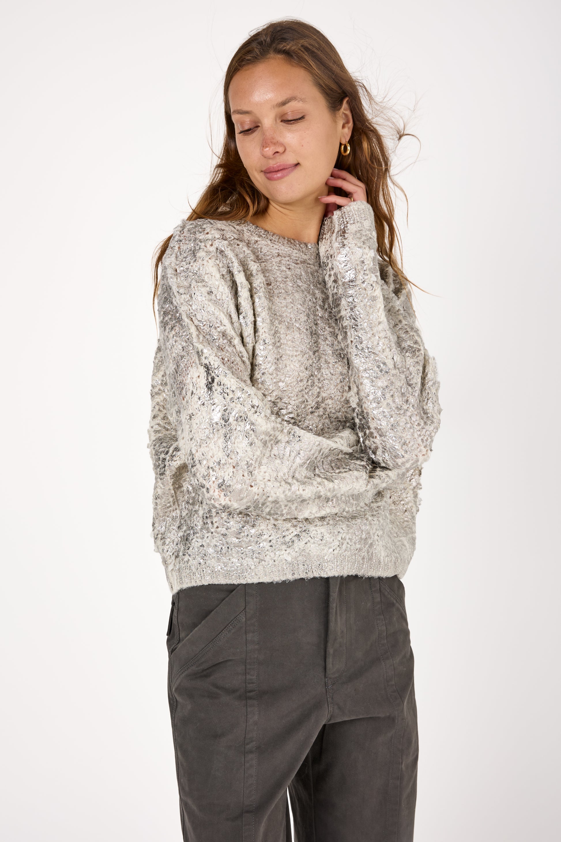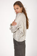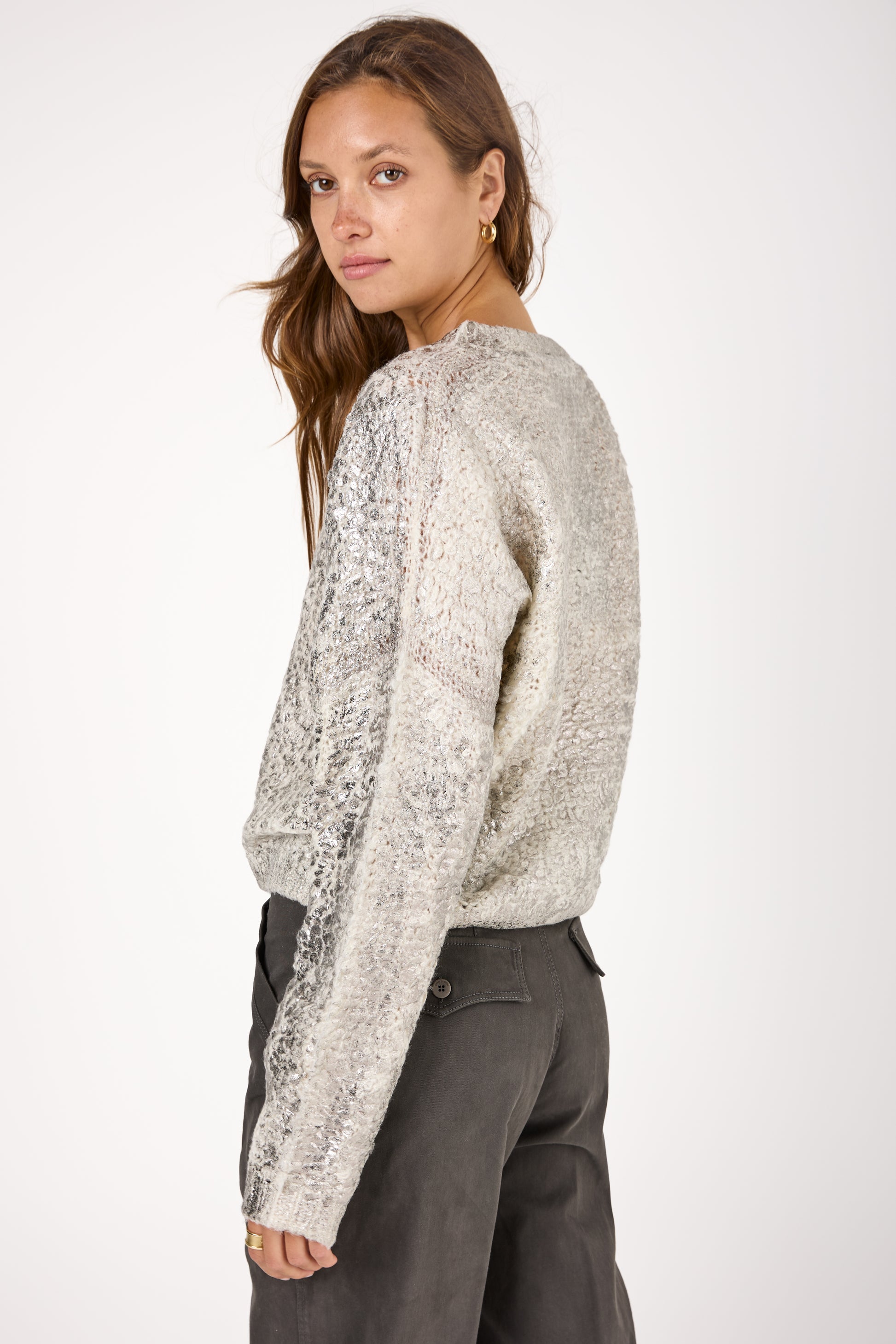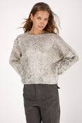 Cashmere Silk Furry Stitch Pullover Sweater with Lamination in Bianco