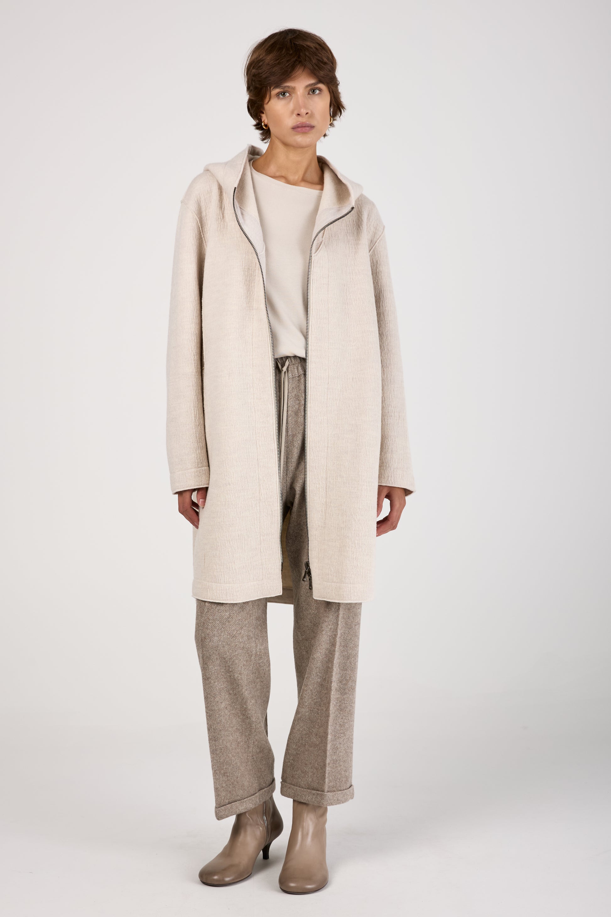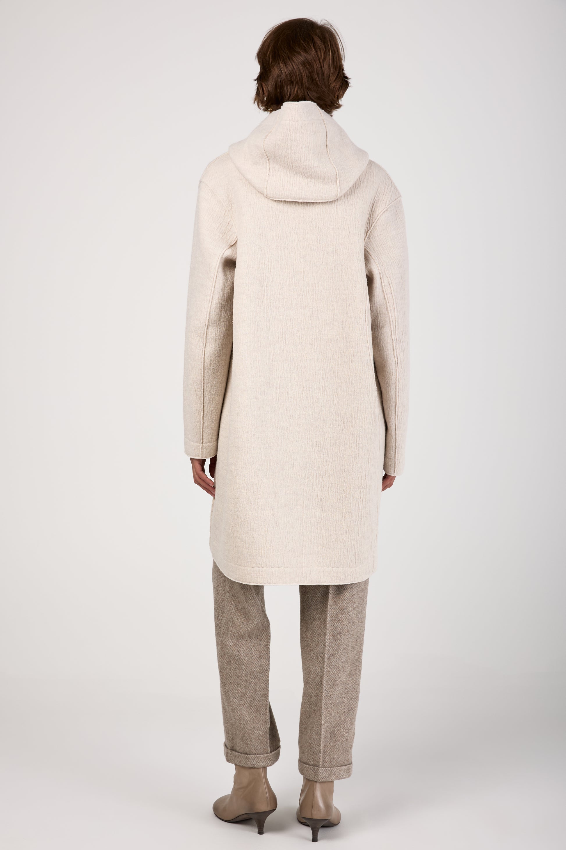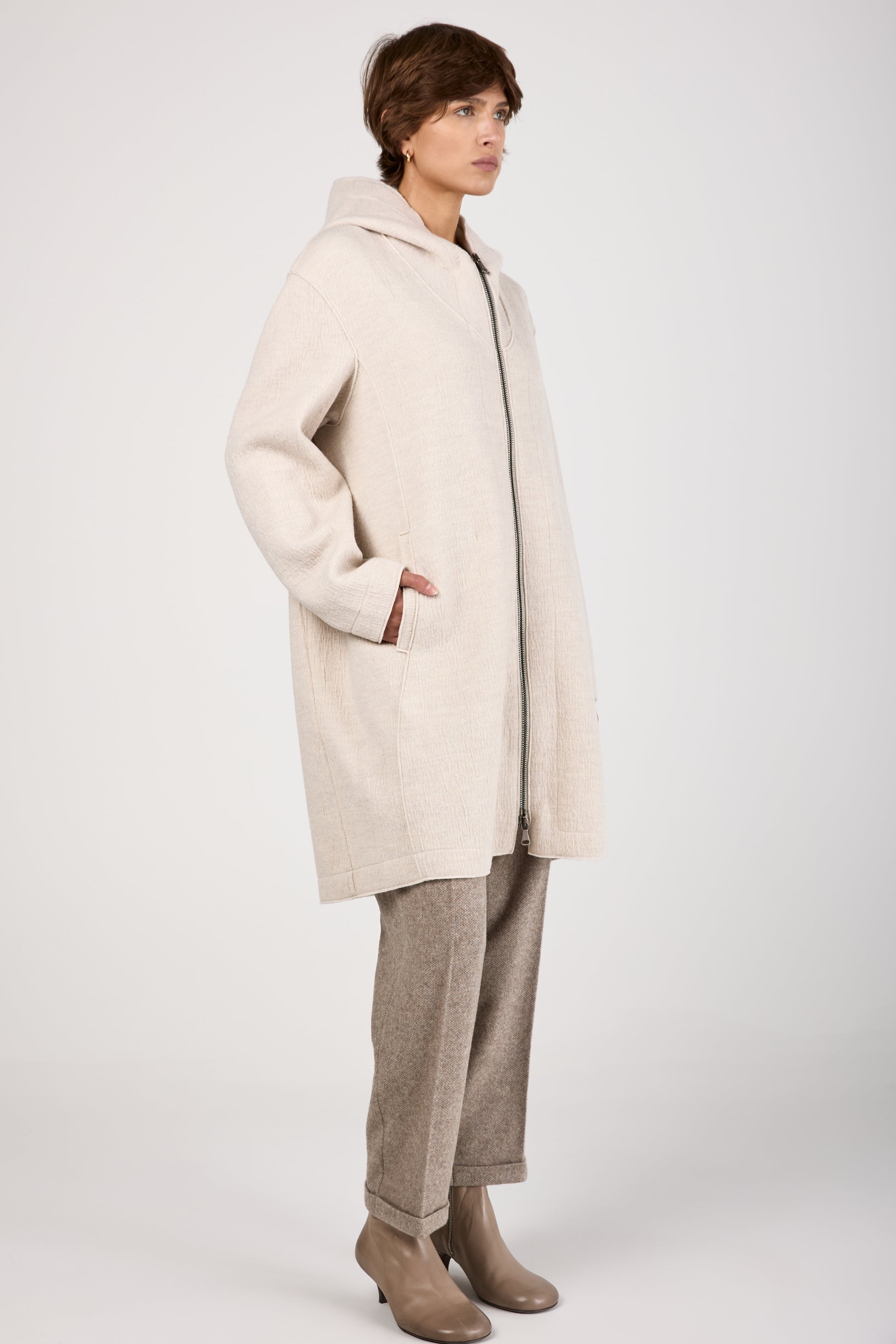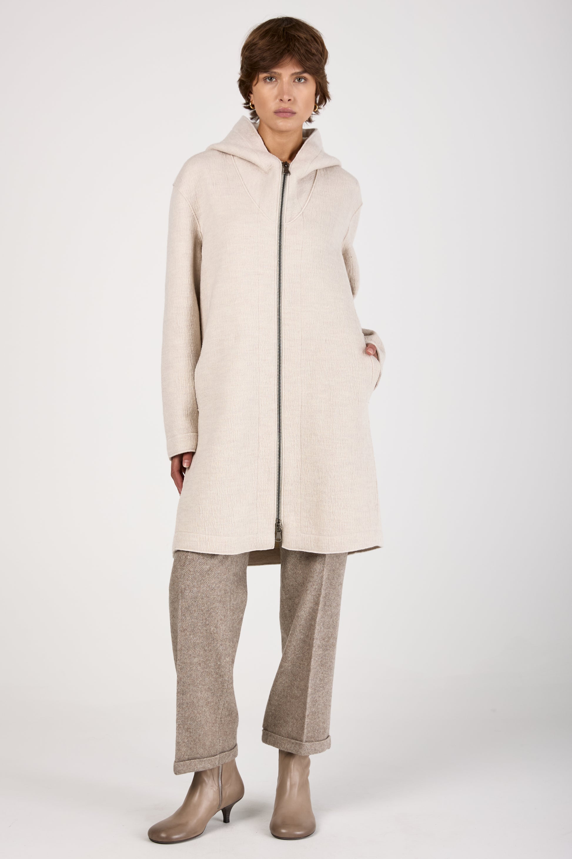 Comfort Hooded Long Wool Jacket in Ice
