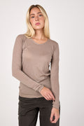 The PRIVATE 0204 Cool Cashmere Top in Cappuch is pure elegance in 100% extra fine cashmere. Made in Italy, this long-sleeved, crew-neck knitwear combines luxury and comfort with a soft, warm feel. Perfect for dressing up or down, this timeless top adds sophistication to any look.