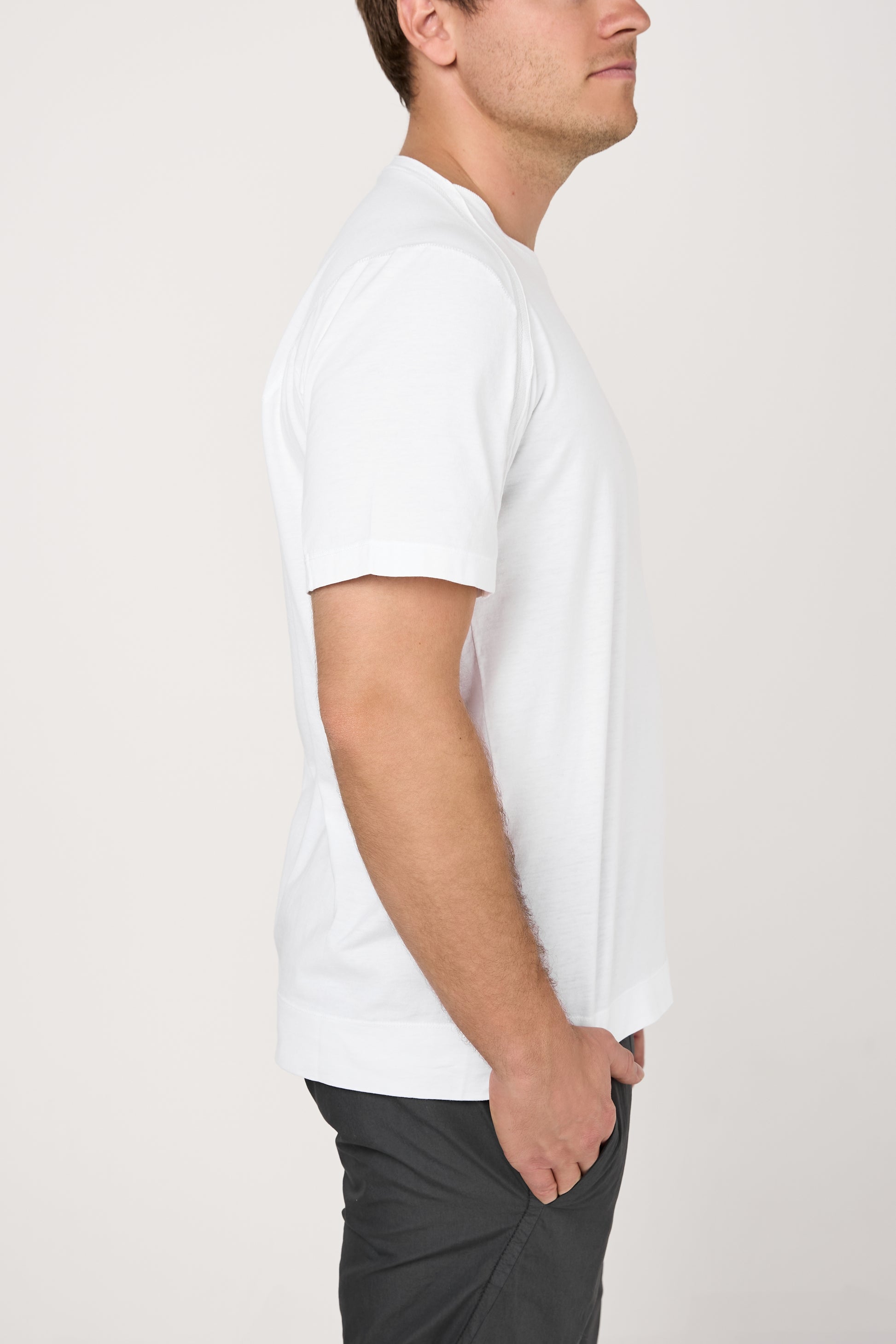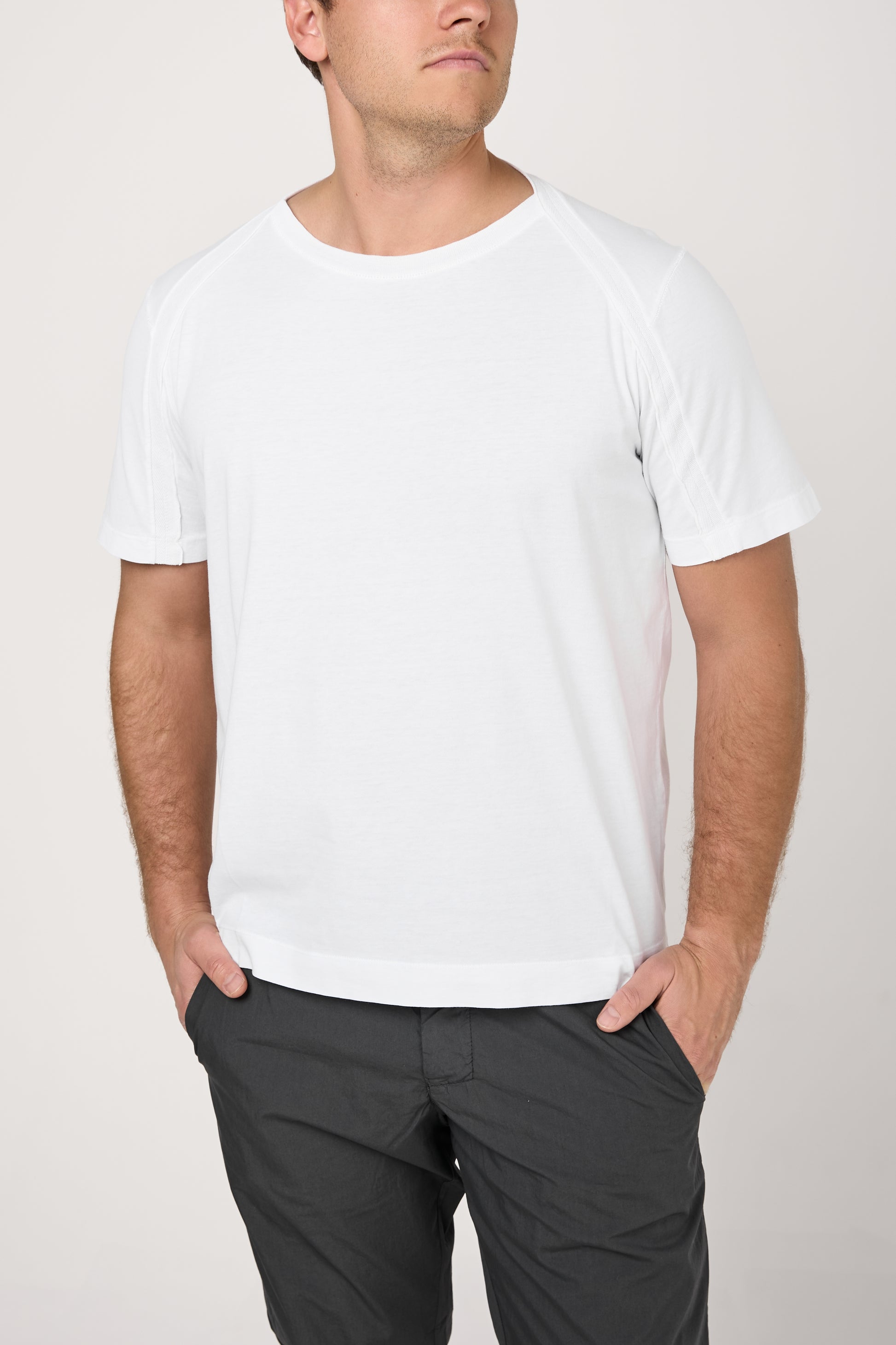 The TRANSIT Cotton Jersey T-Shirt in Optical White is crafted in Italy from soft cotton jersey with a relaxed, modern fit. Knitted accents at the collar and sleeves, an inner patch at the nape, and a stepped hem with subtle side slits bring quiet distinction to this everyday essential.