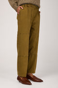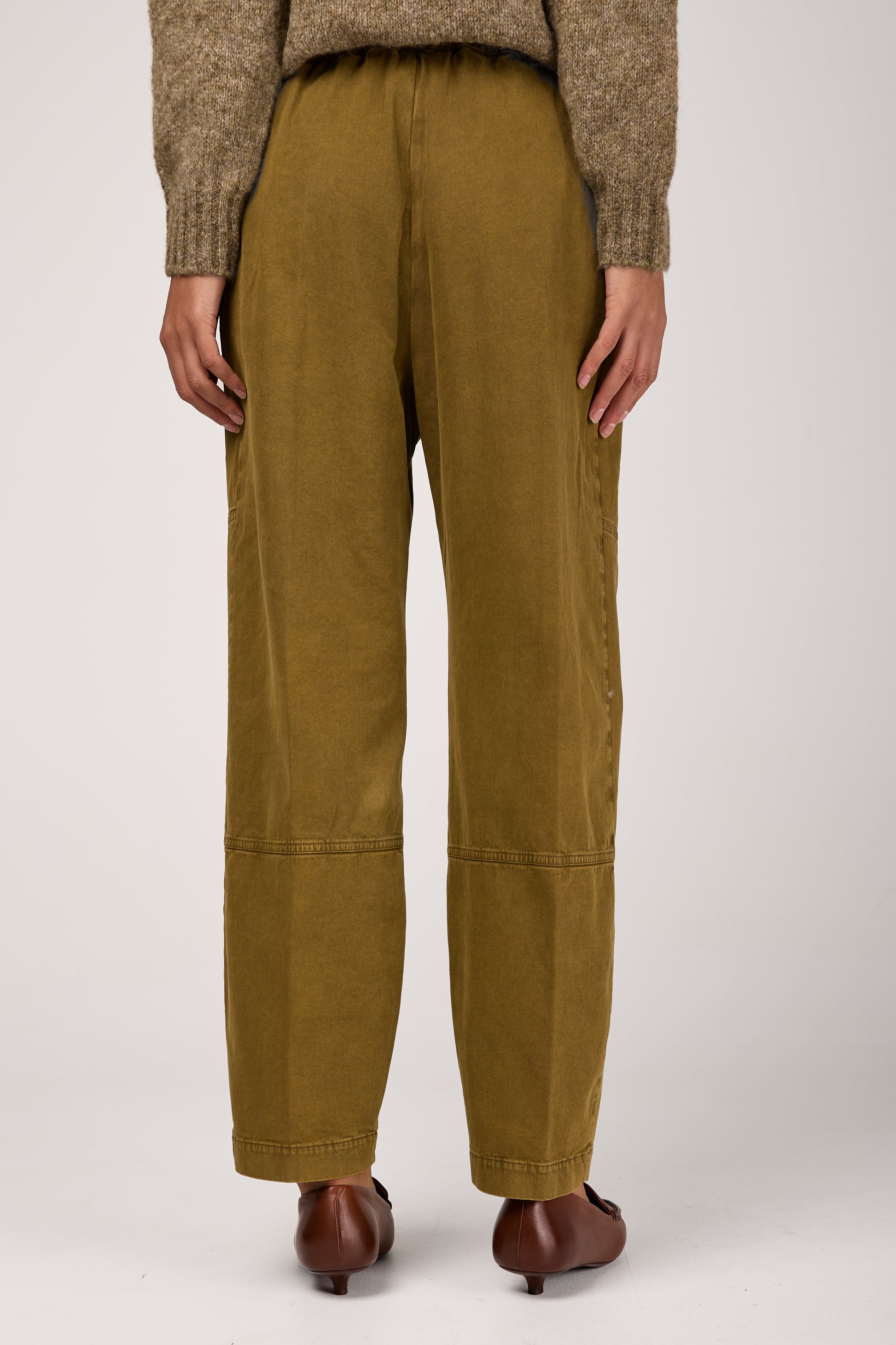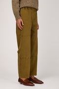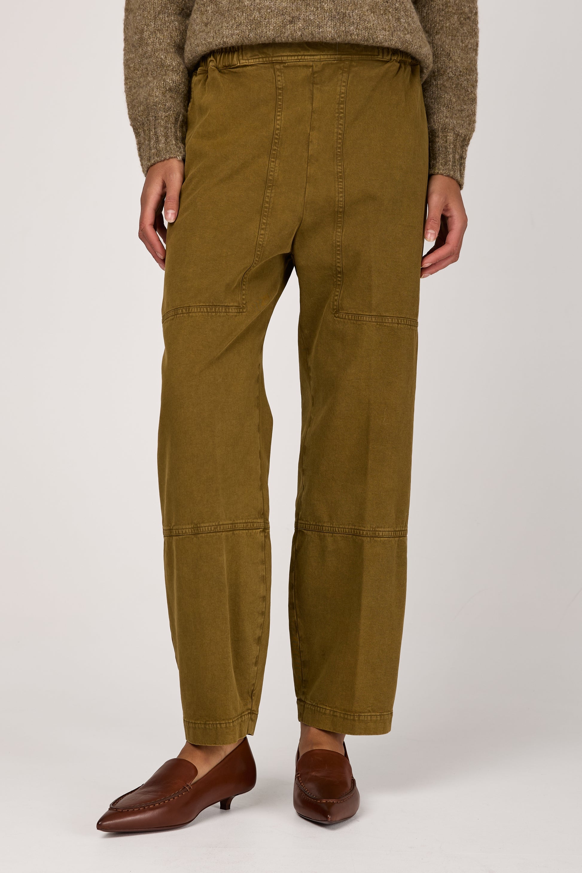 The GENTRYPORTOFINO Cotton Woven Pant in Oliva, crafted in Italy, features a timeless olive-green hue. Designed with a straight-leg silhouette and subtle tapering at the ankle, it offers a flattering, versatile shape that transitions effortlessly from day to evening. The elastic waistband ensures comfort and ease of wear, while the clean finish and ankle-length cut lend a refined, modern touch to this wardrobe staple.