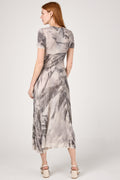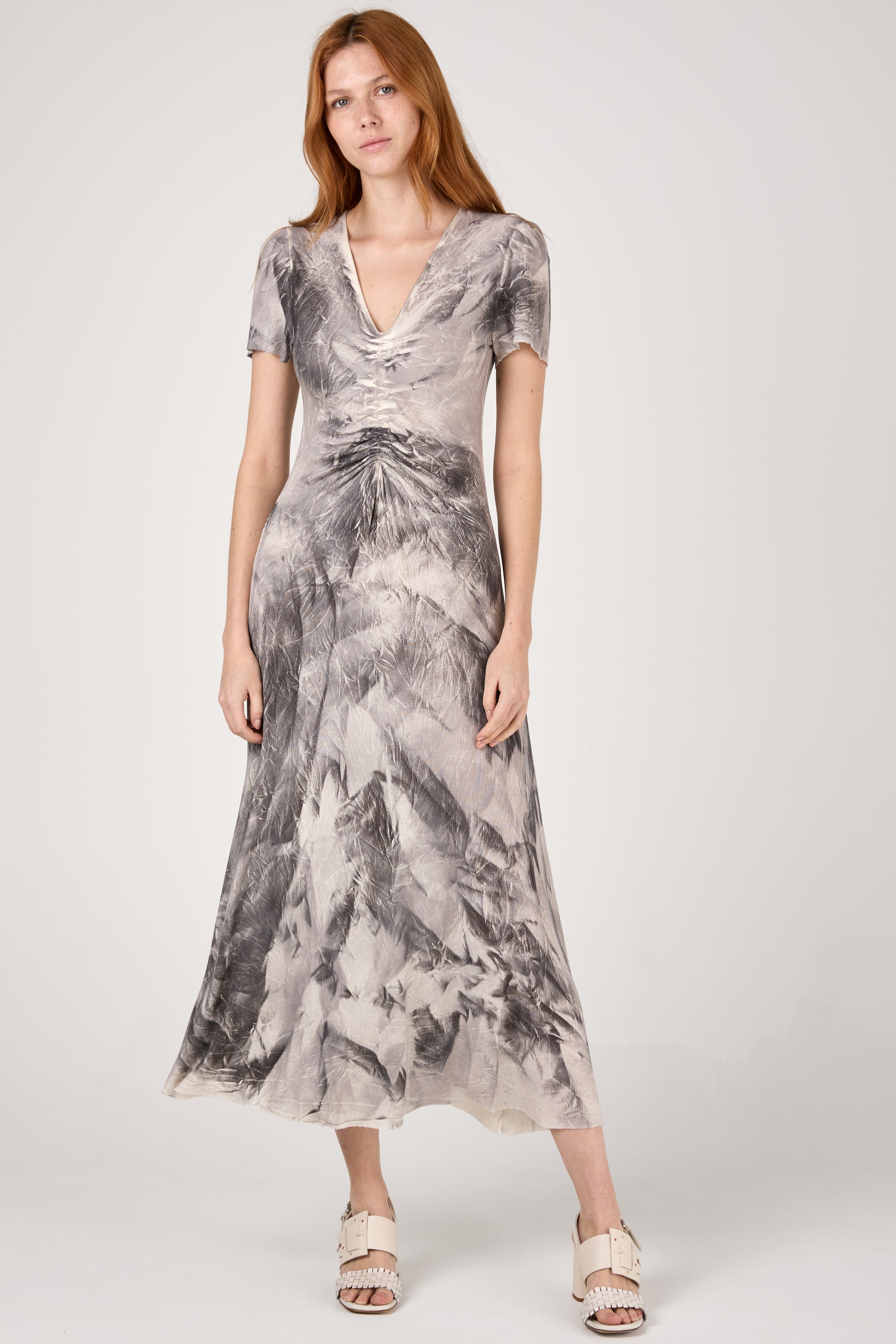 Cracked Effect Ribbed Long Dress in Mercurio and Nero