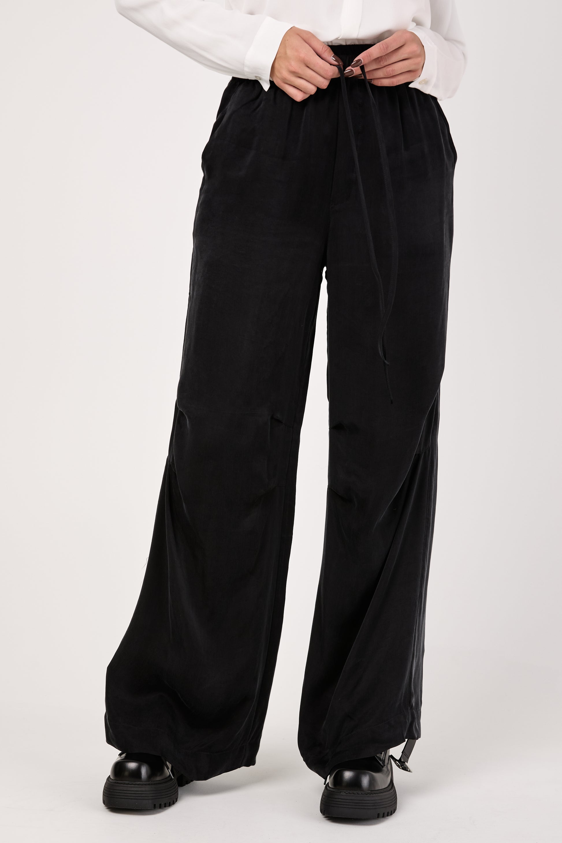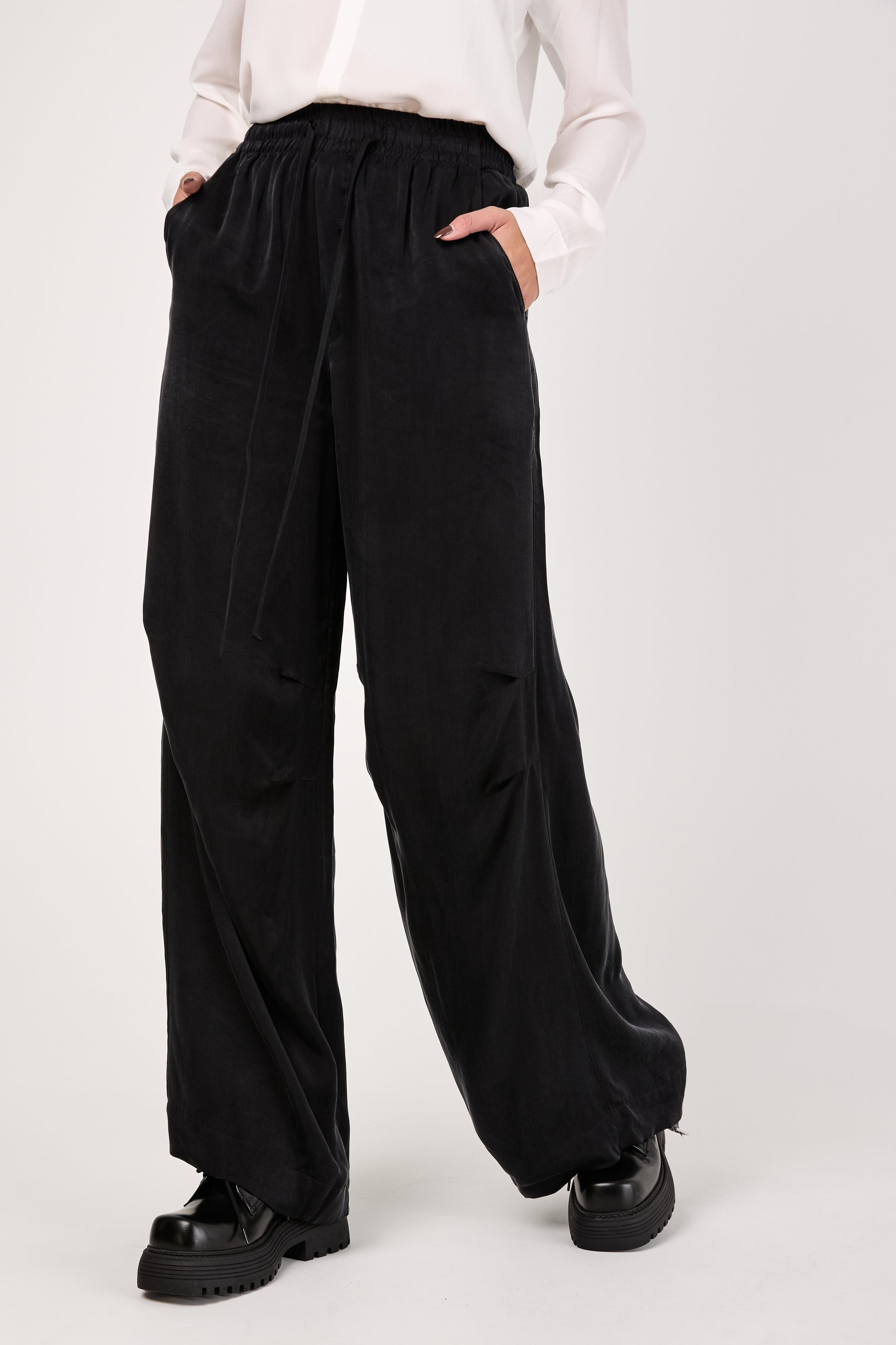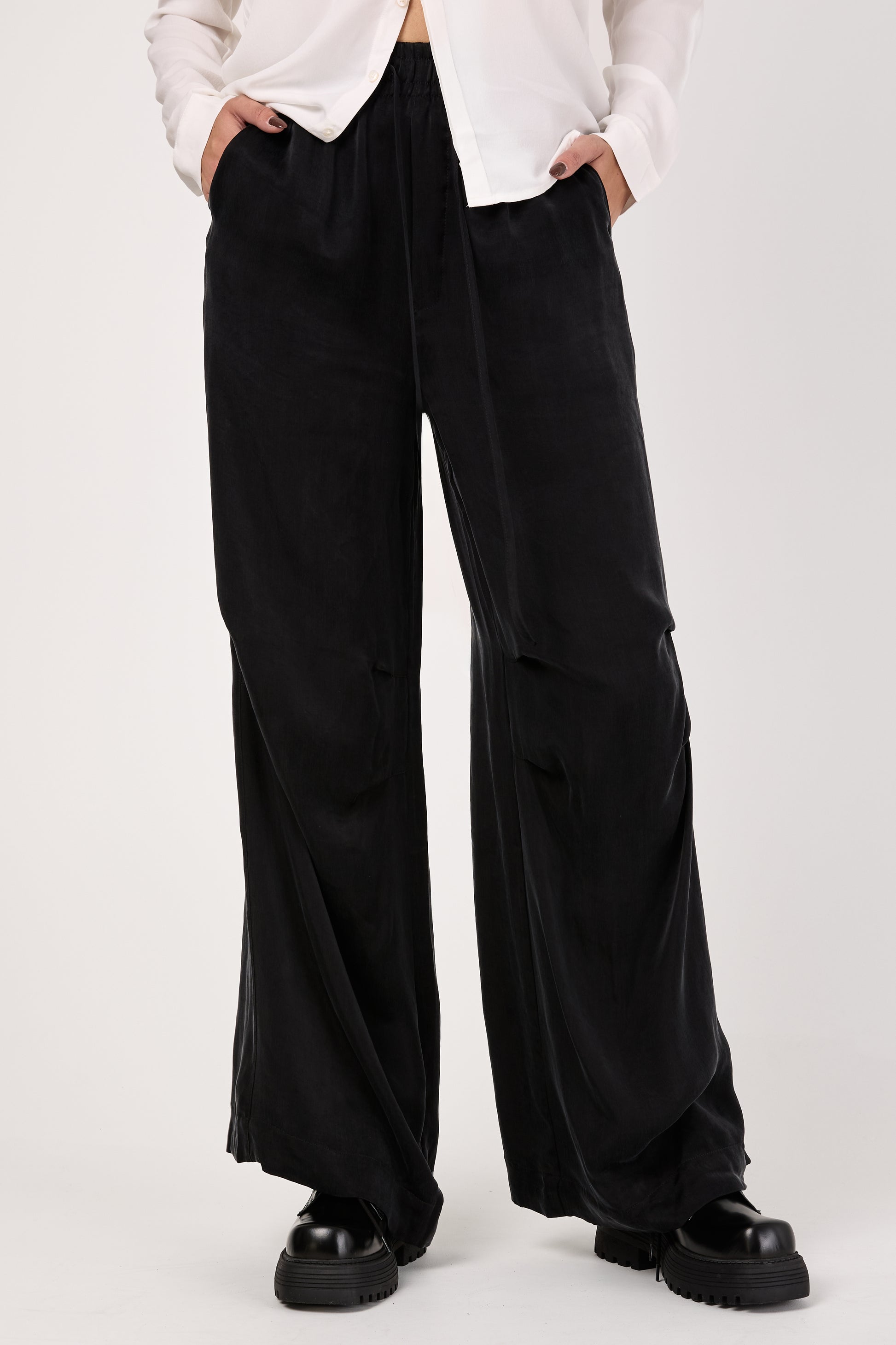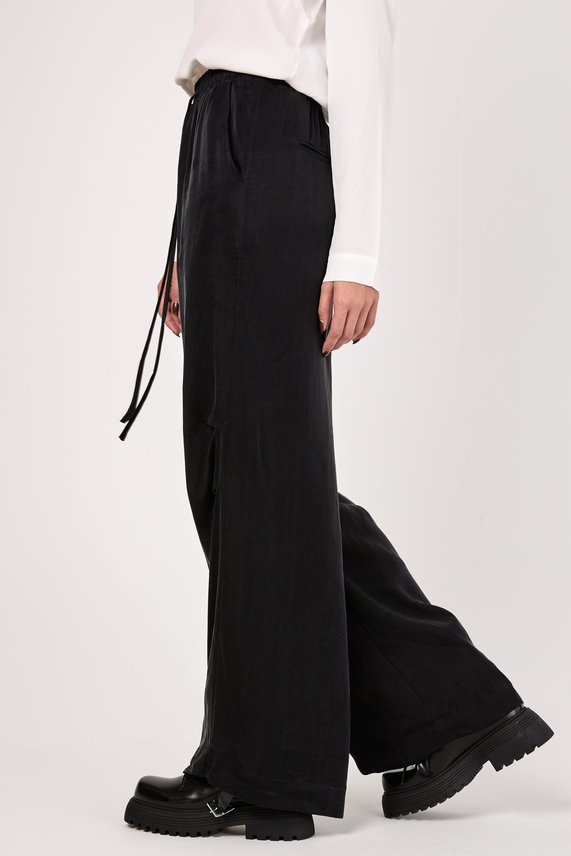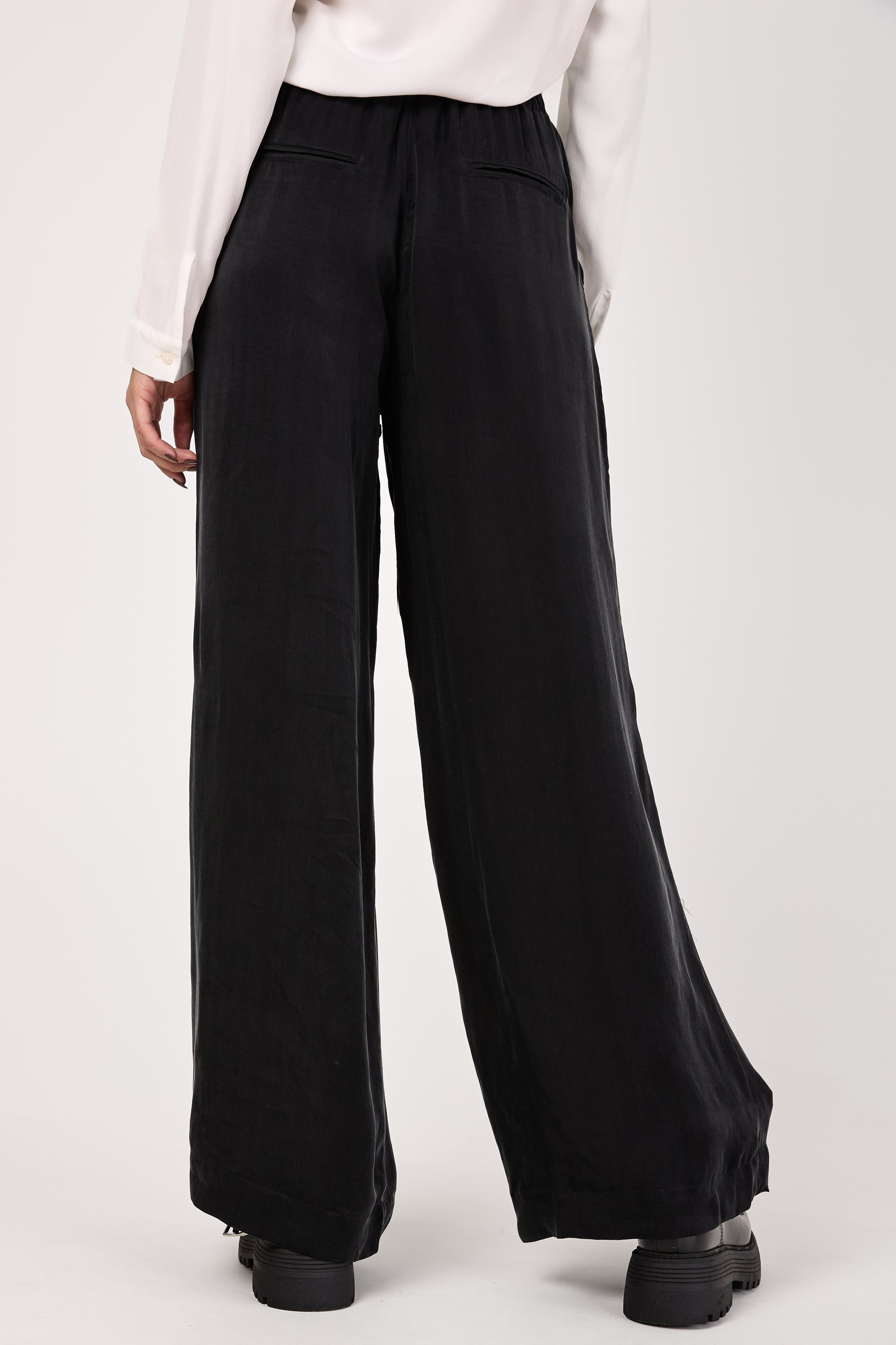 The ANDREA YA'AQOV Cupro Wide Pants in Black are crafted from luxurious, eco-friendly cupro fabric. These high-rise, wide-leg pants offer a relaxed fit and a flowing silhouette, perfect for both casual and refined looks. The deep black color adds sophistication, making these pants versatile for day or night.