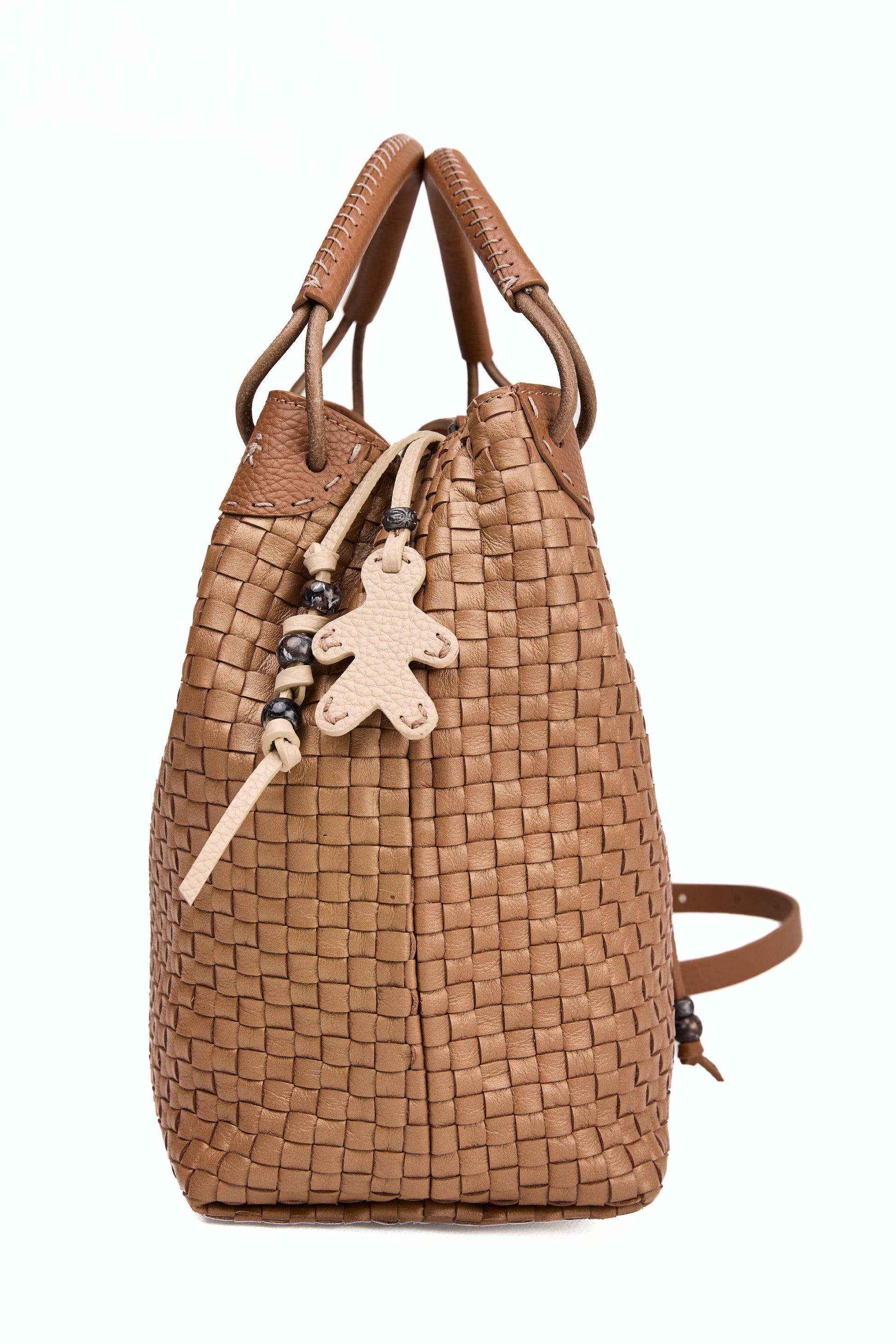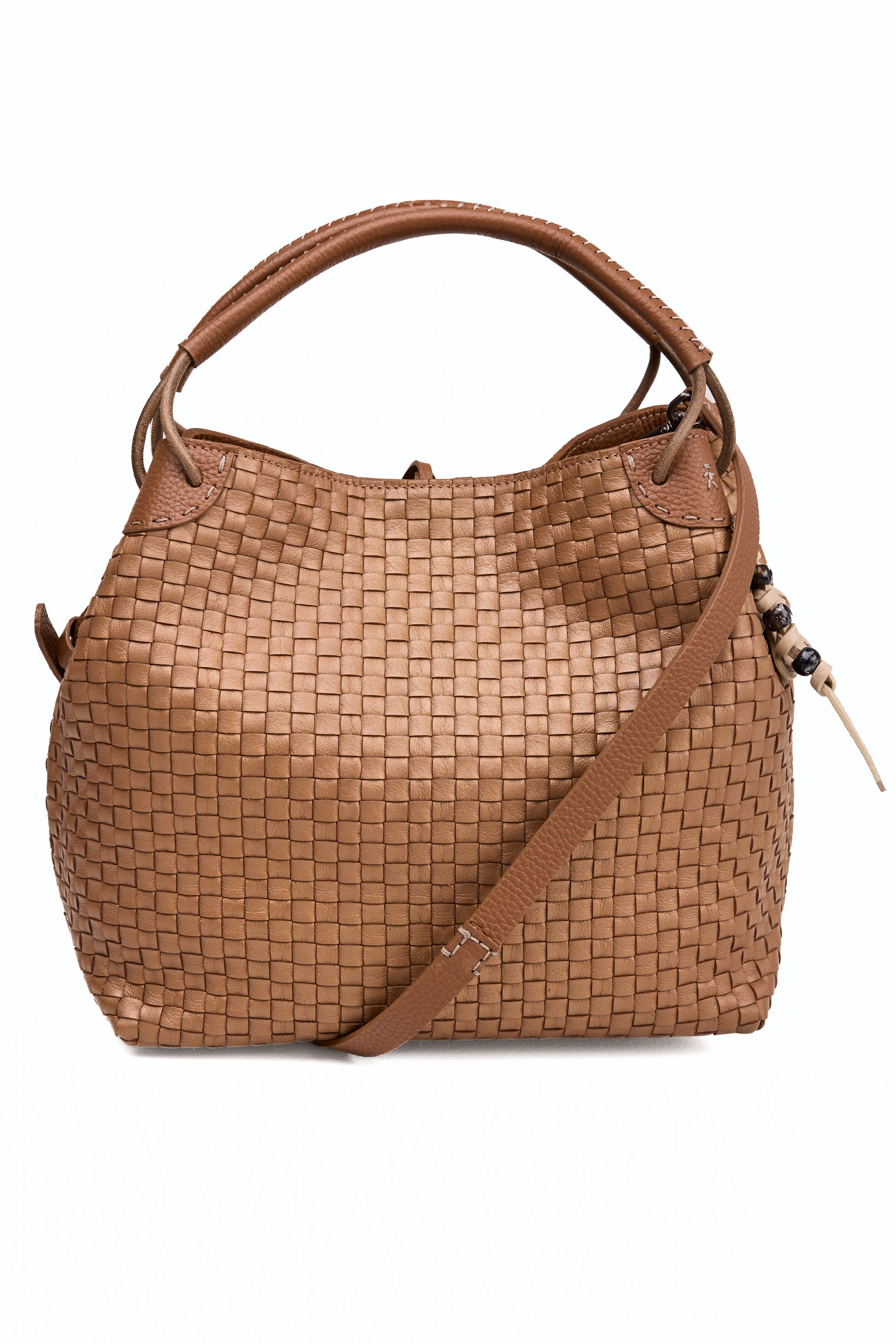 Daria Woven Intreccio Leather Bag in Dama Lamination Caramel