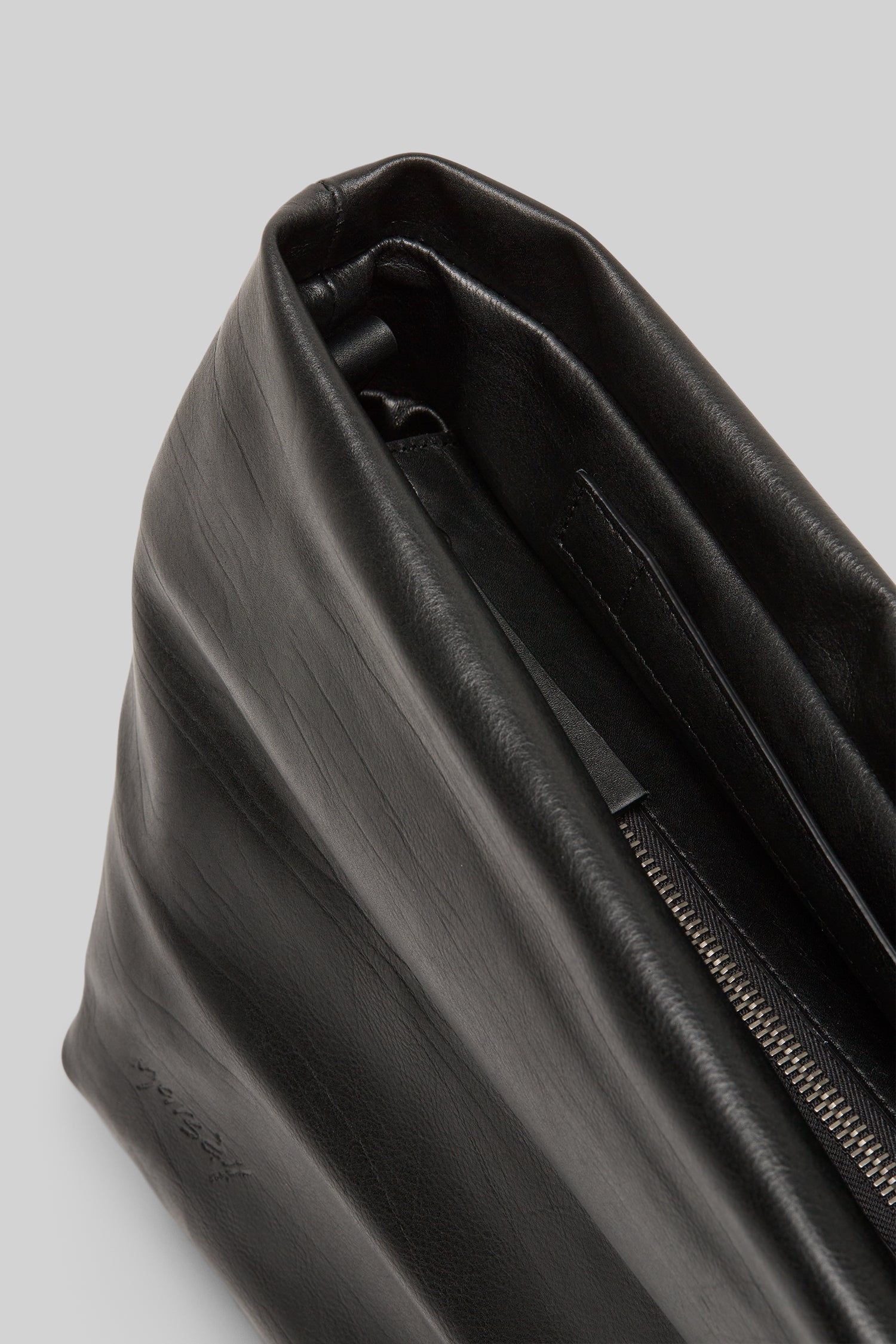 MARSÈLL Fanta Leather Shoulder Bag in Black. Elevate your style with this bag handcrafted in Italy from premium soft smooth leather. A perfect accessory to add a touch of sophistication to your everyday wear or for special occasions.