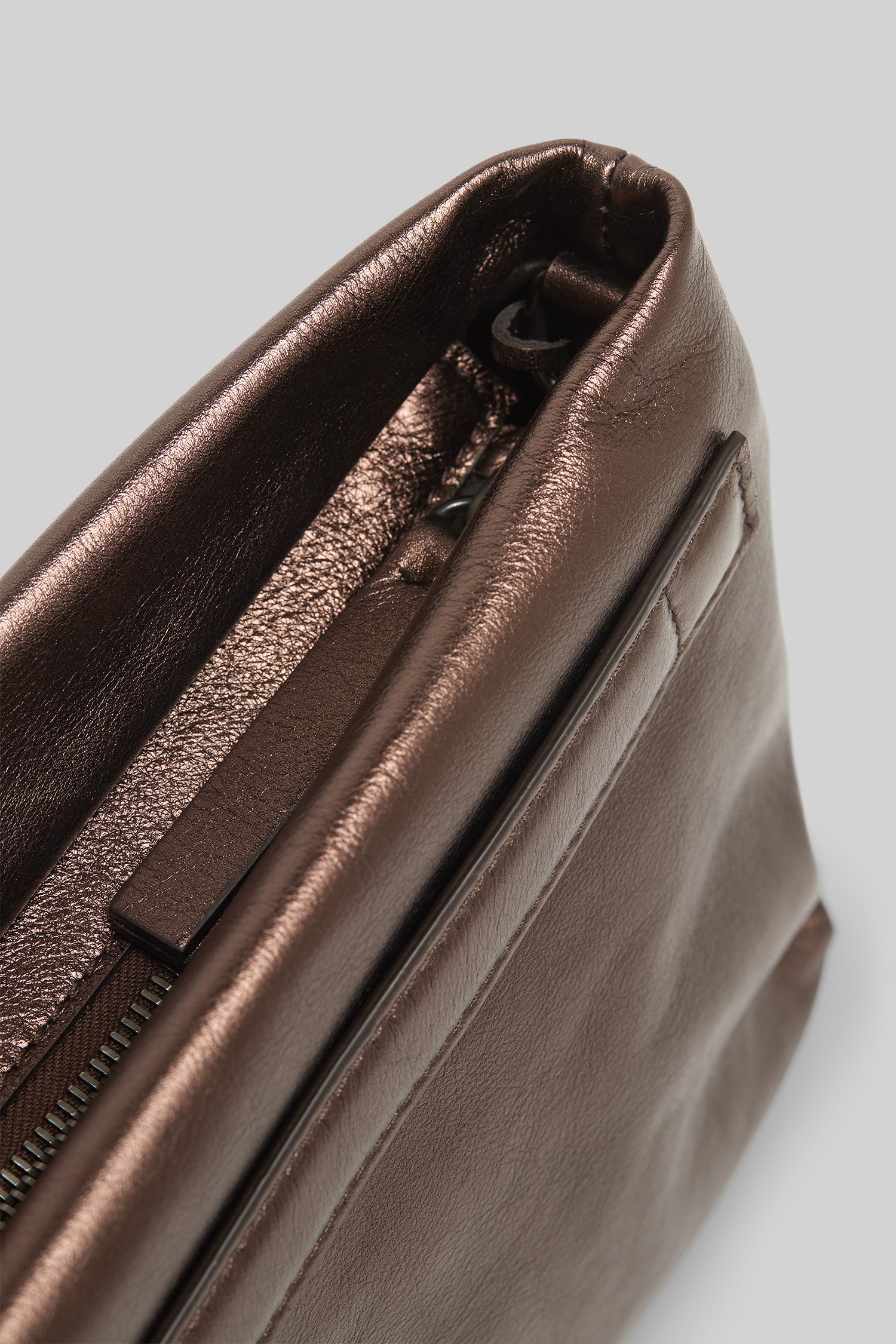 The MARSÈLL Fantasmino Leather Clutch Bag in Moro is a striking accessory crafted from premium soft laminated leather. Featuring a modern metallic finish, this sleek clutch is perfect for adding a touch of elegance to any outfit. Handcrafted in Italy, it combines bold style with timeless sophistication.