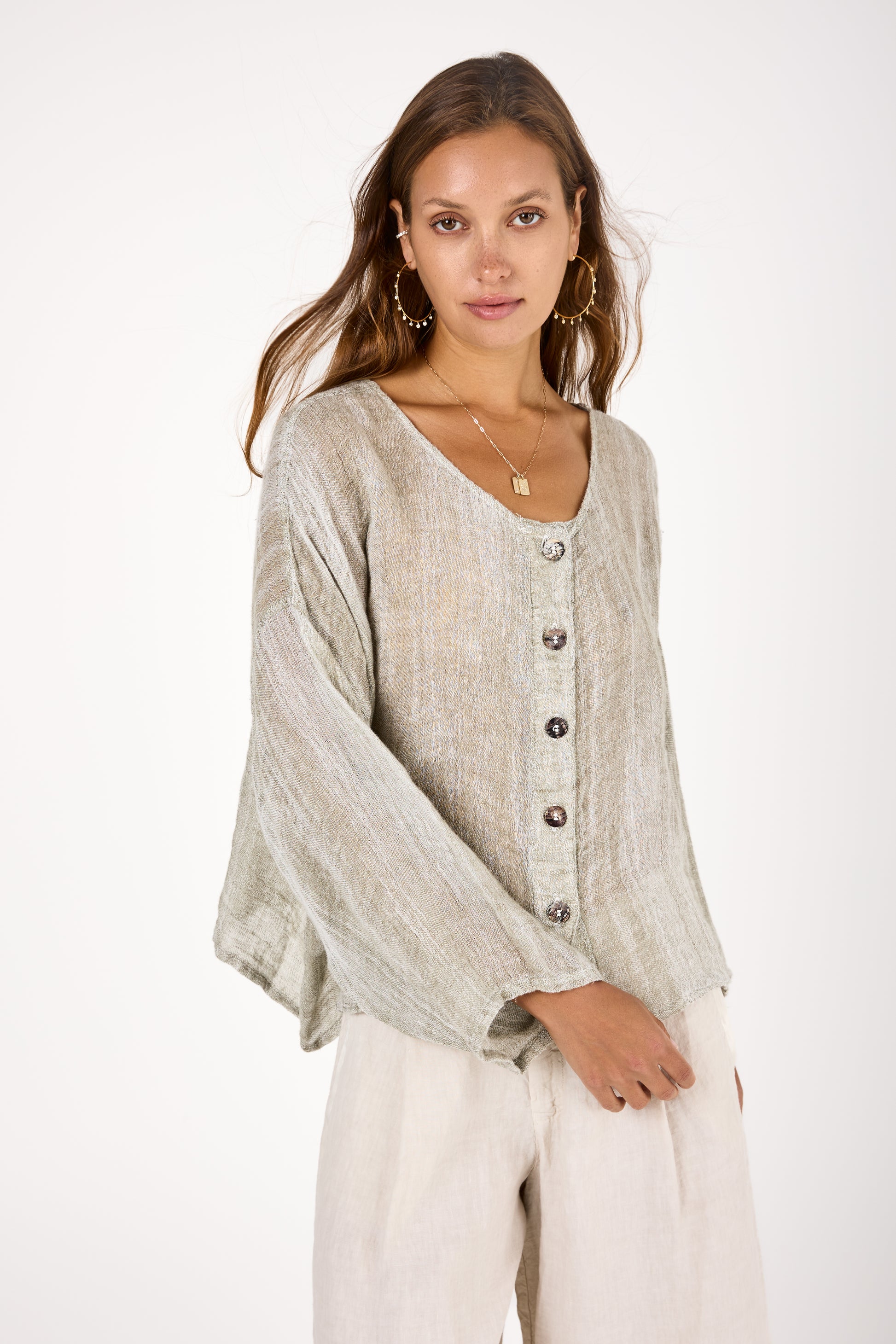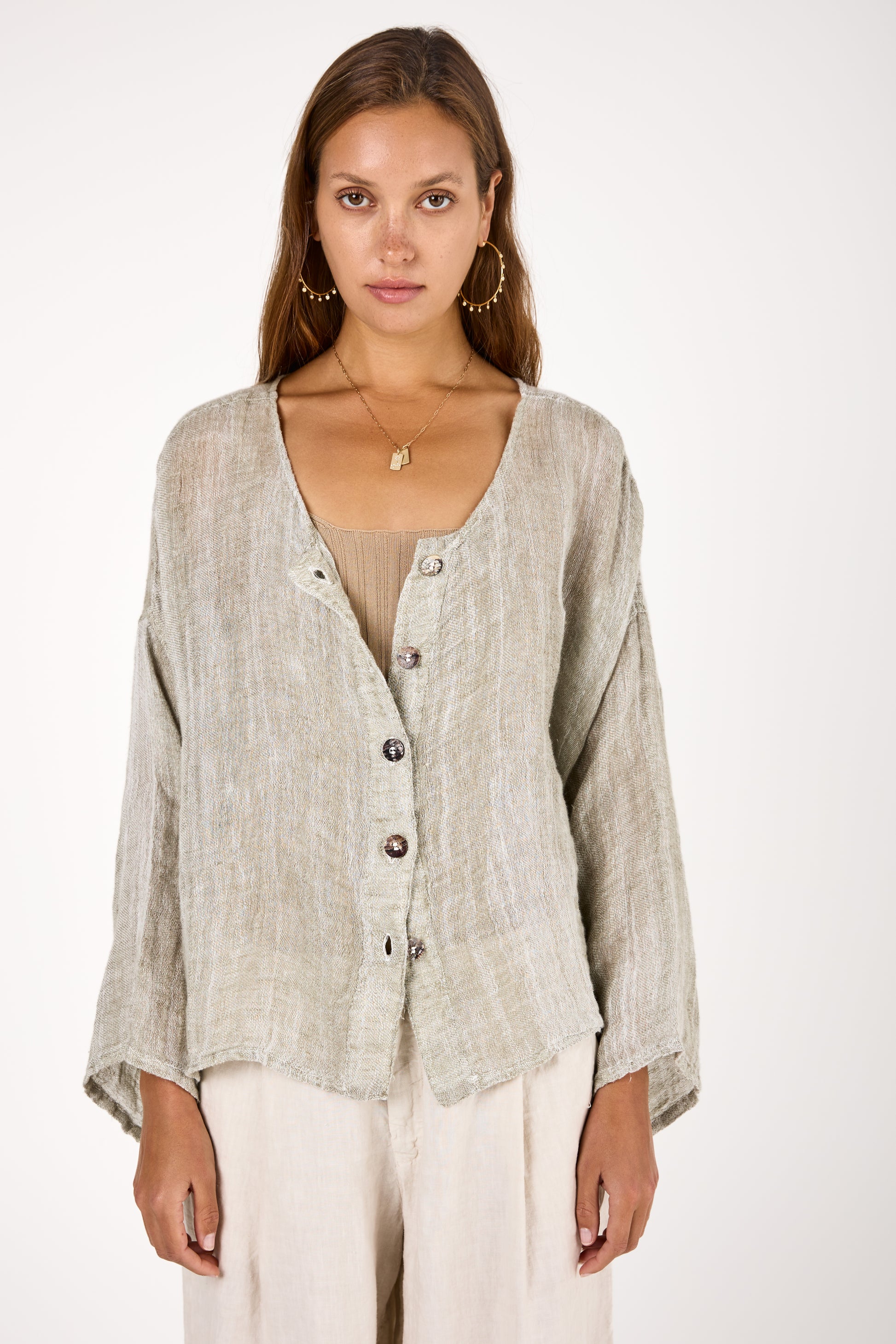 The La Bottega di Brunella Textured Latte Jacket combines timeless Italian craftsmanship with modern style. Crafted from lightweight linen in a soft latte hue, this jacket offers versatility and elegance for any season, making it ideal for layering.