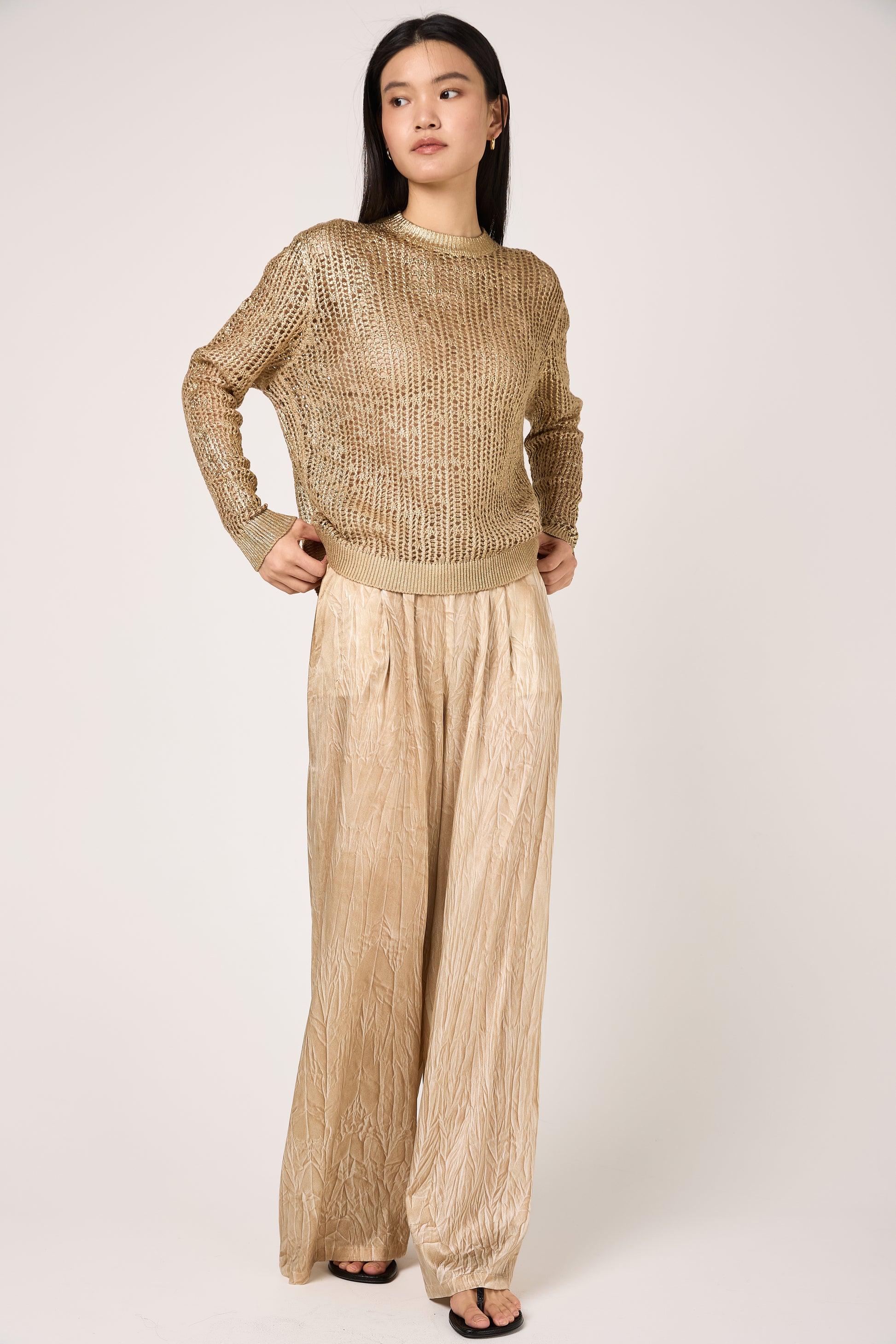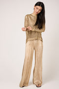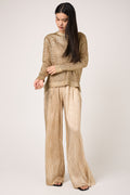 Crumpled Effect Silk Palazzo Trouser Pant in Sughero