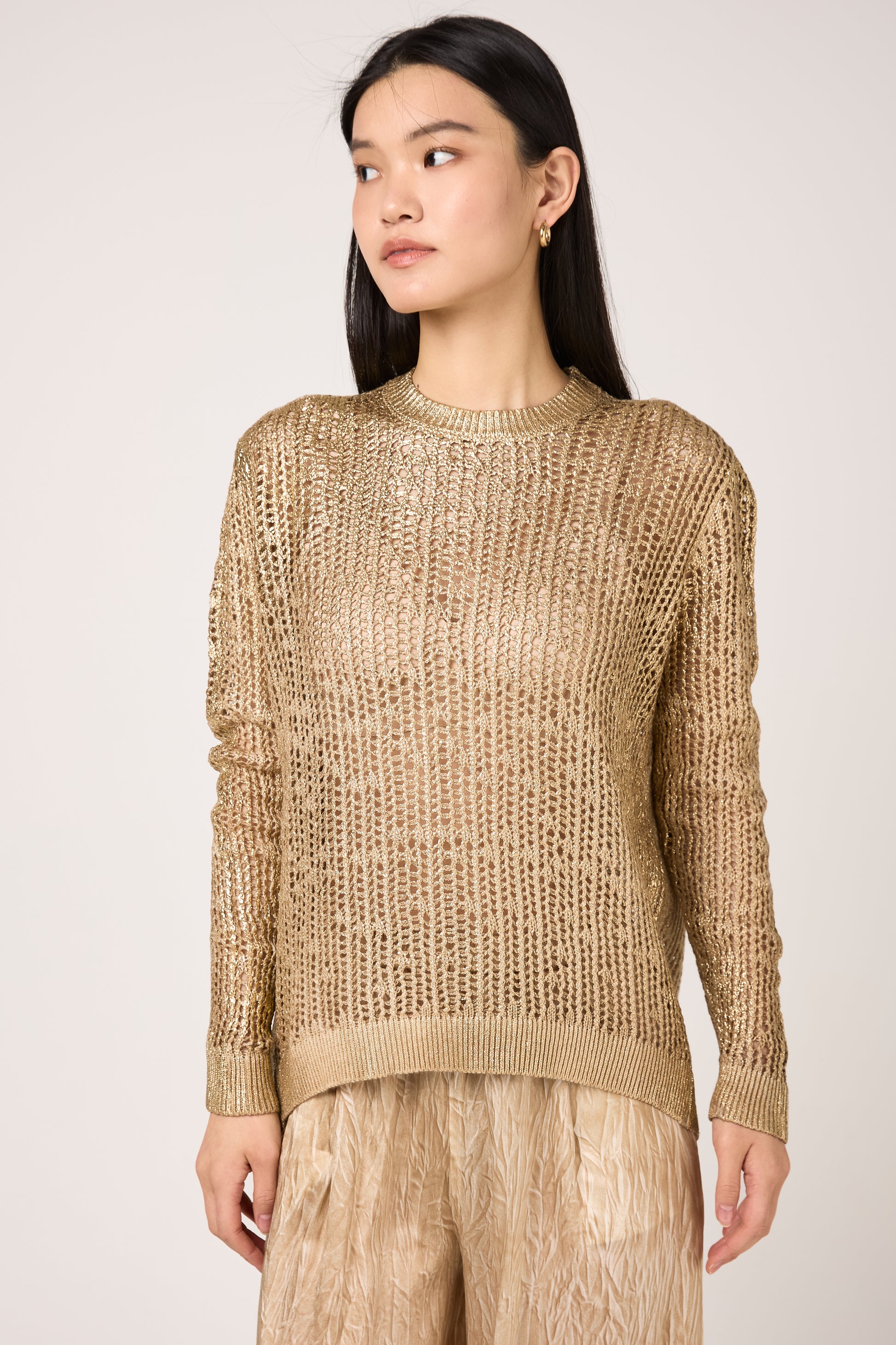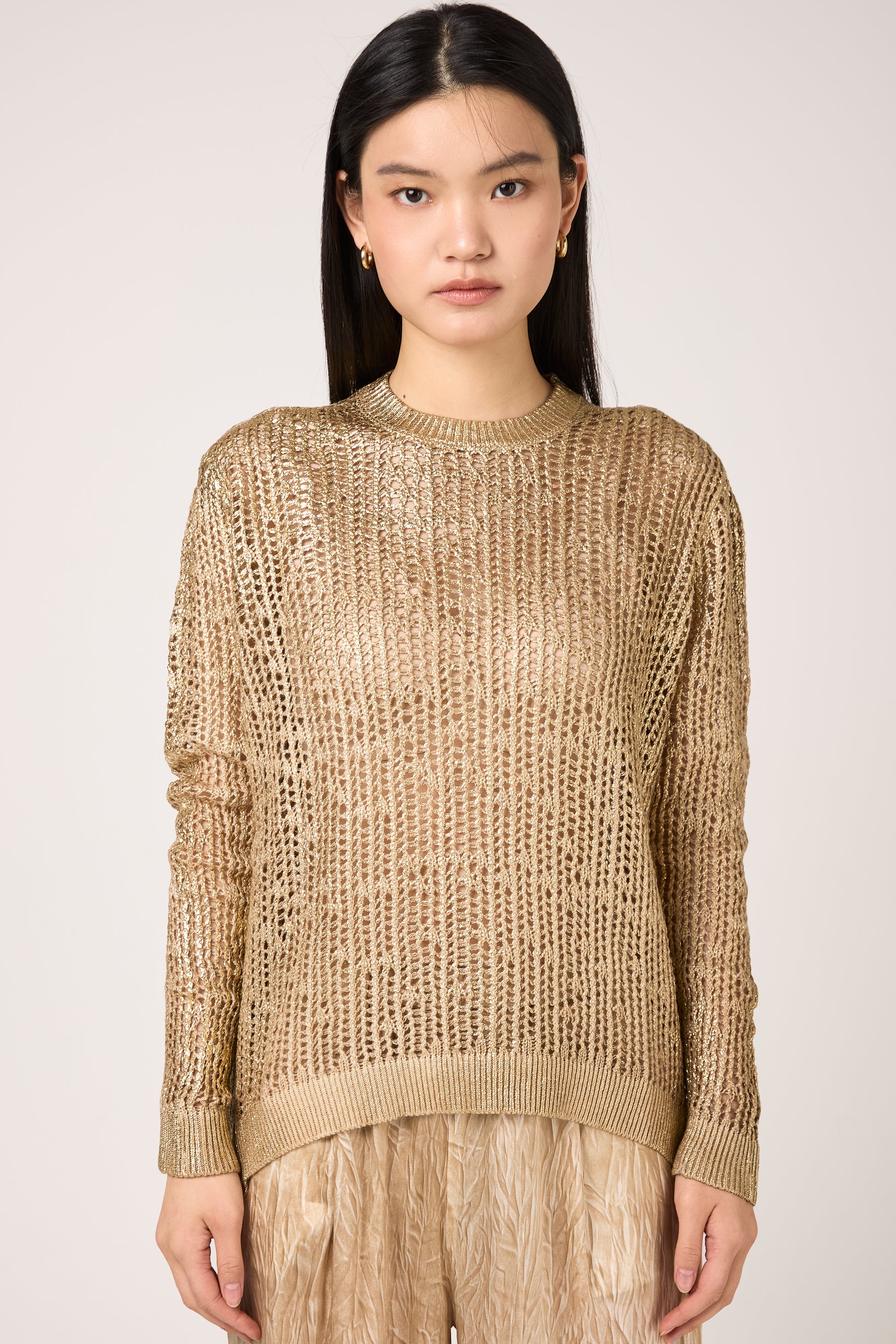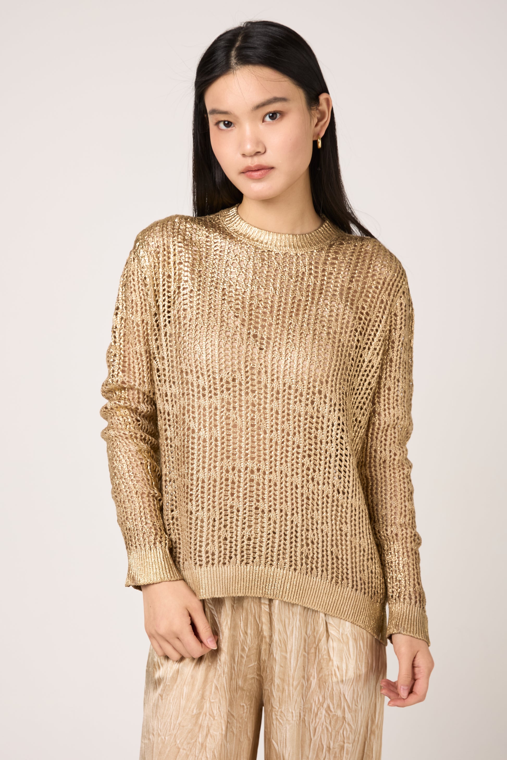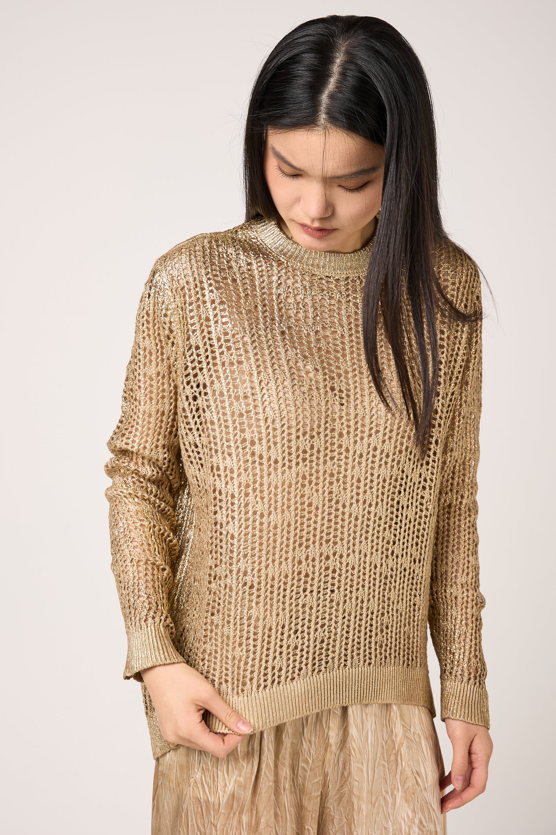 Hand Painted Laminated Net Stitch Pullover in Sughero