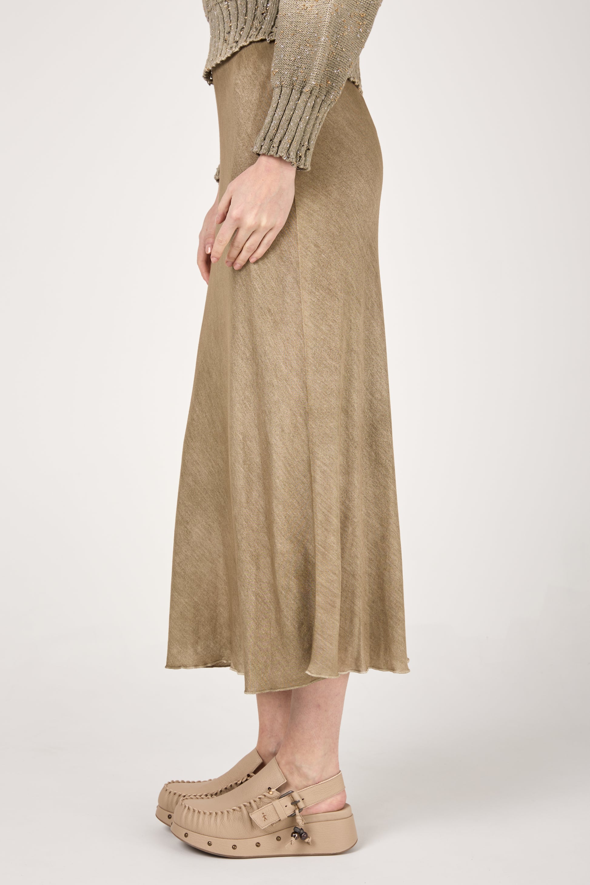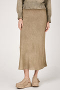 The AVANT TOI Hand Painted Midi Skirt in Mushroom, crafted in Italy, is a true expression of craftmanship, as it features a meticulously hand-painted finish, creating a unique, textured effect. The rich Mushroom hue, with its earthy sophistication, enhances this midi-length skirt versatility, making it perfect for both day and evening wear.