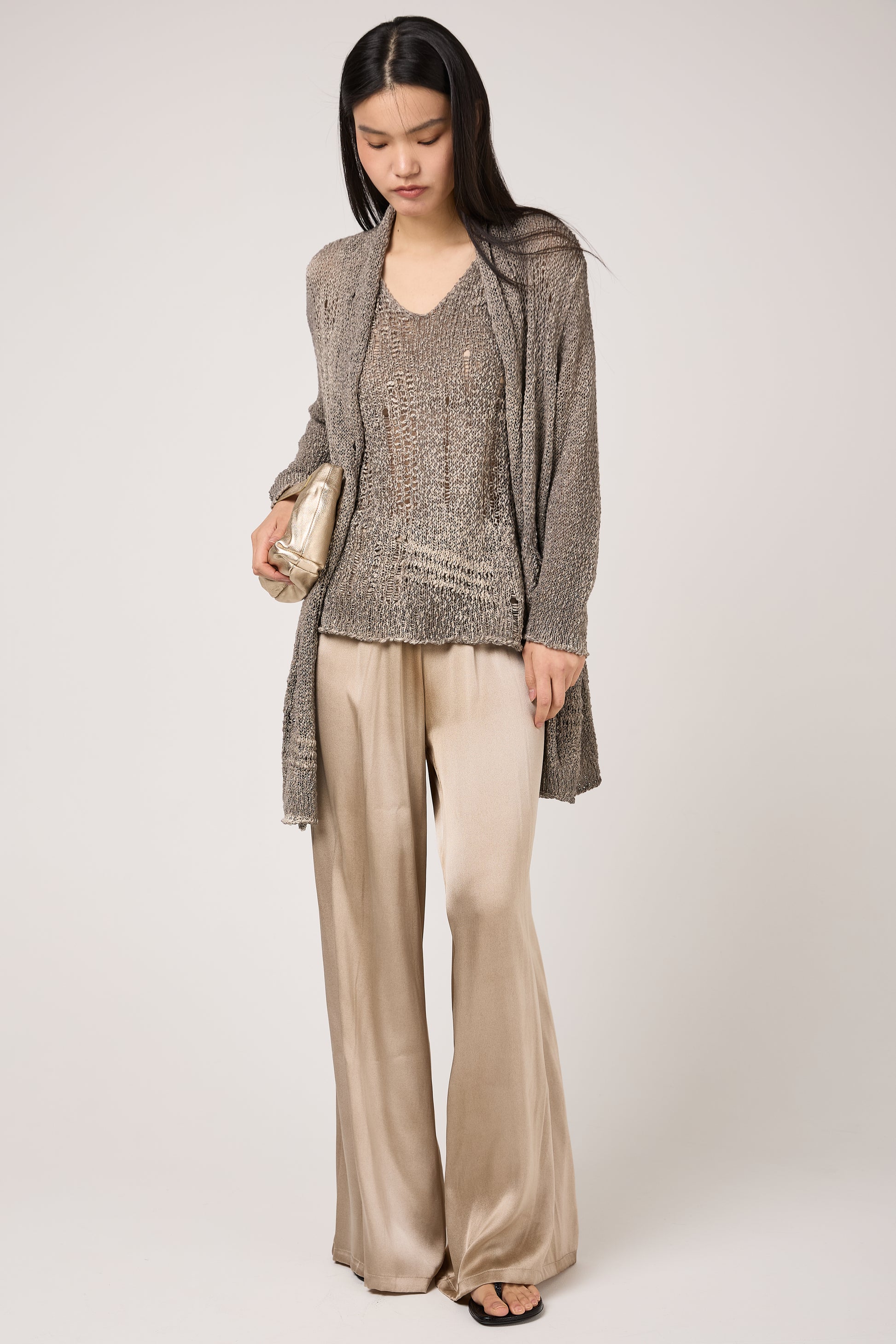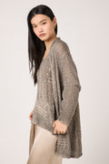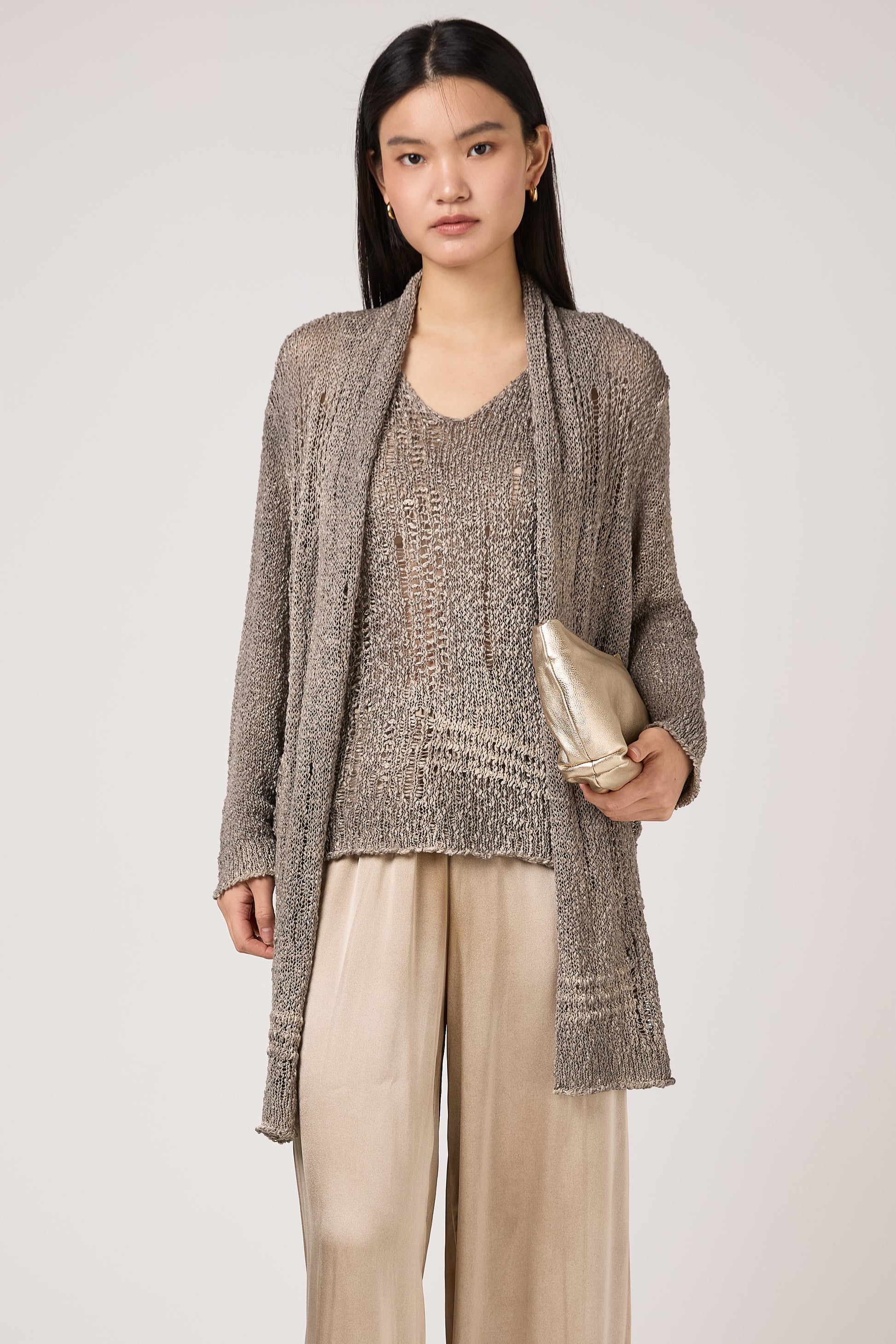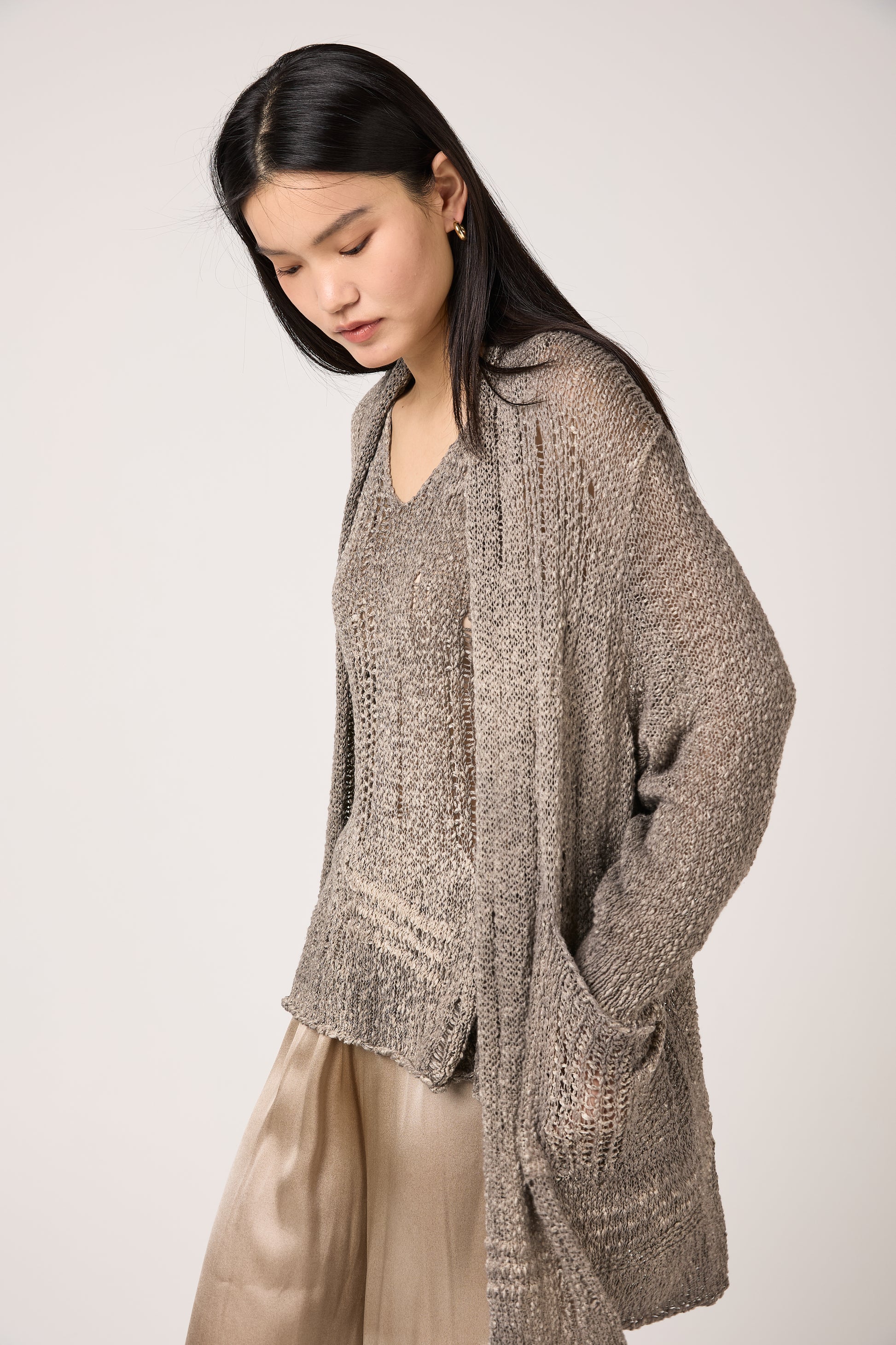 Hand Painted Openwork Knit Shawled Cardigan in Fango