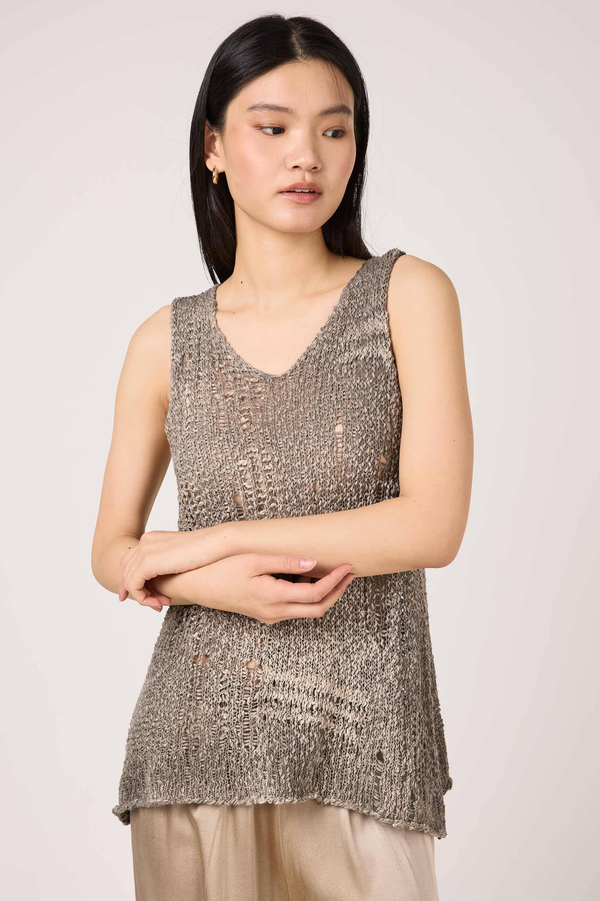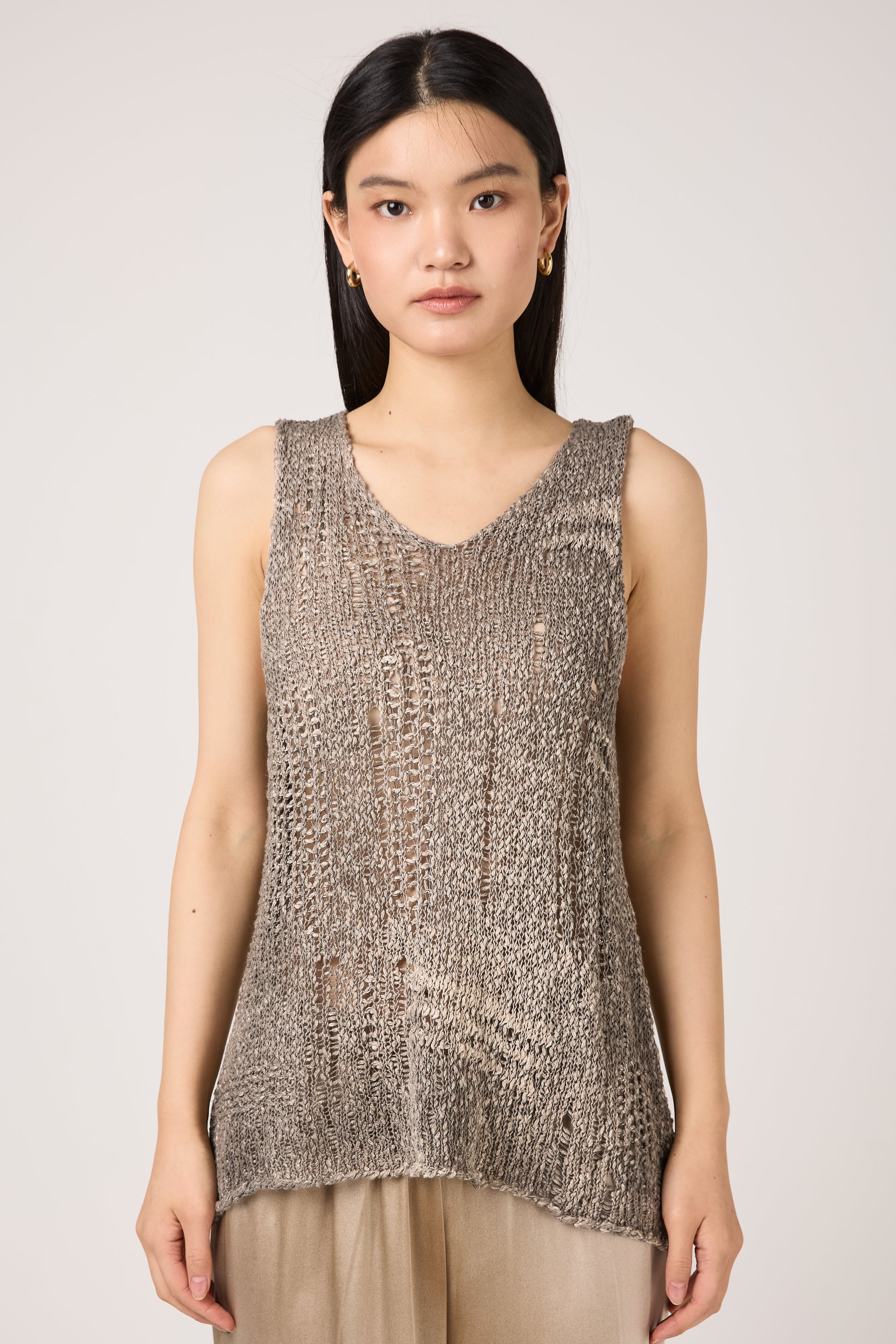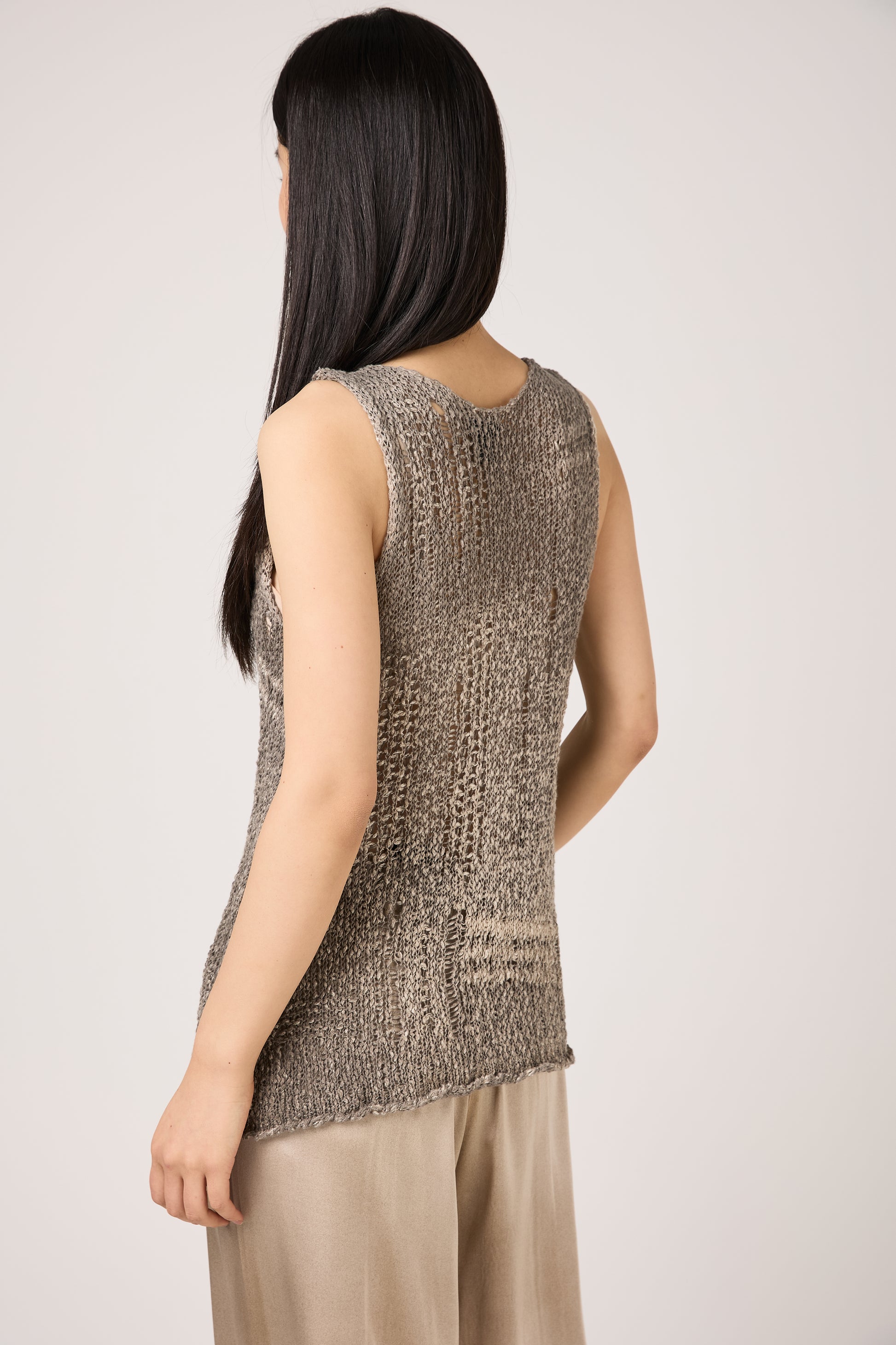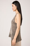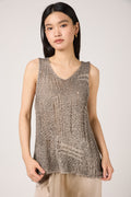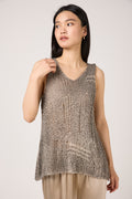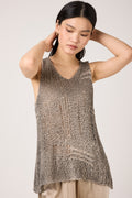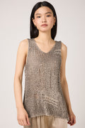 Hand Painted Openwork Knit Tank Top in Fango