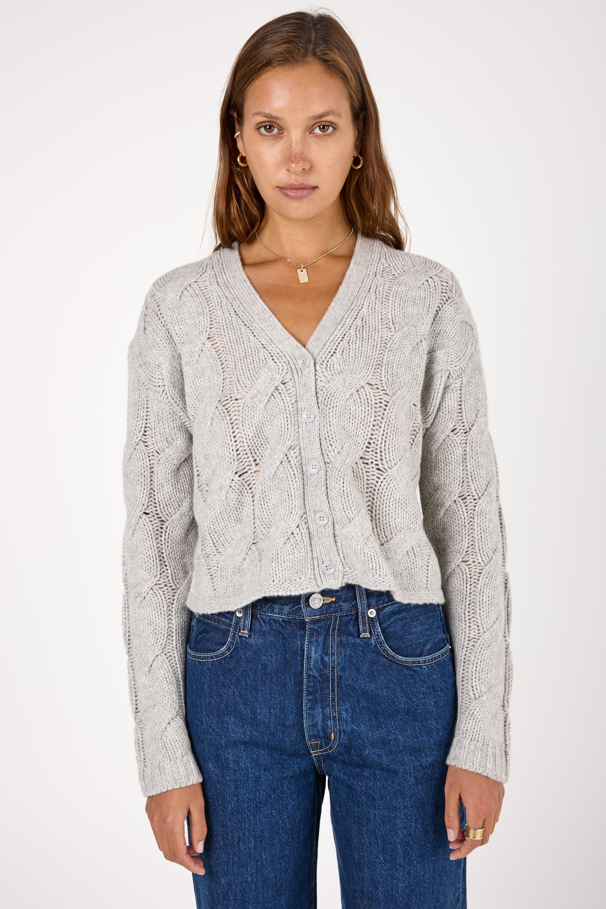 Jolie Cropped Cashmere Cable Cardigan in Foggy