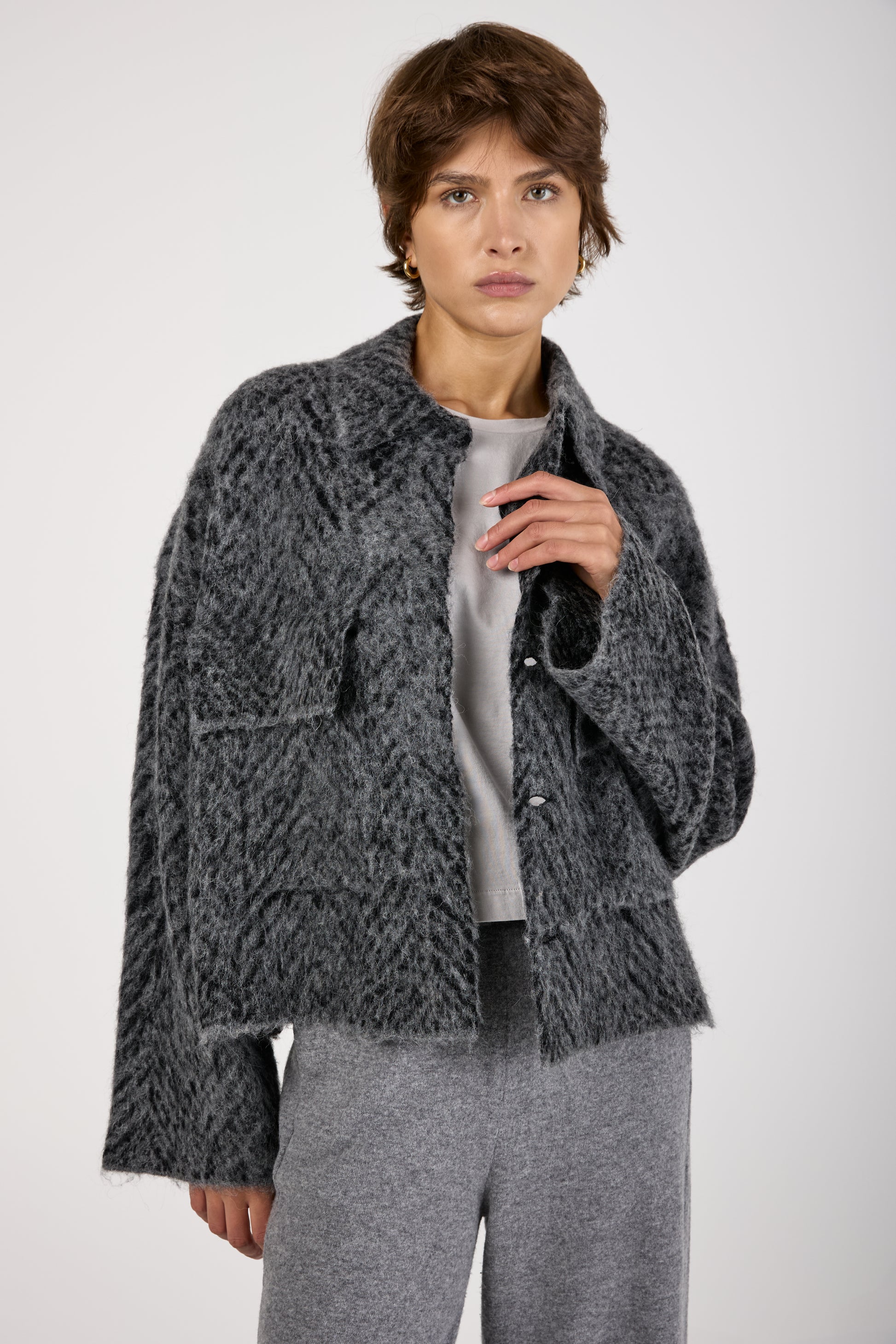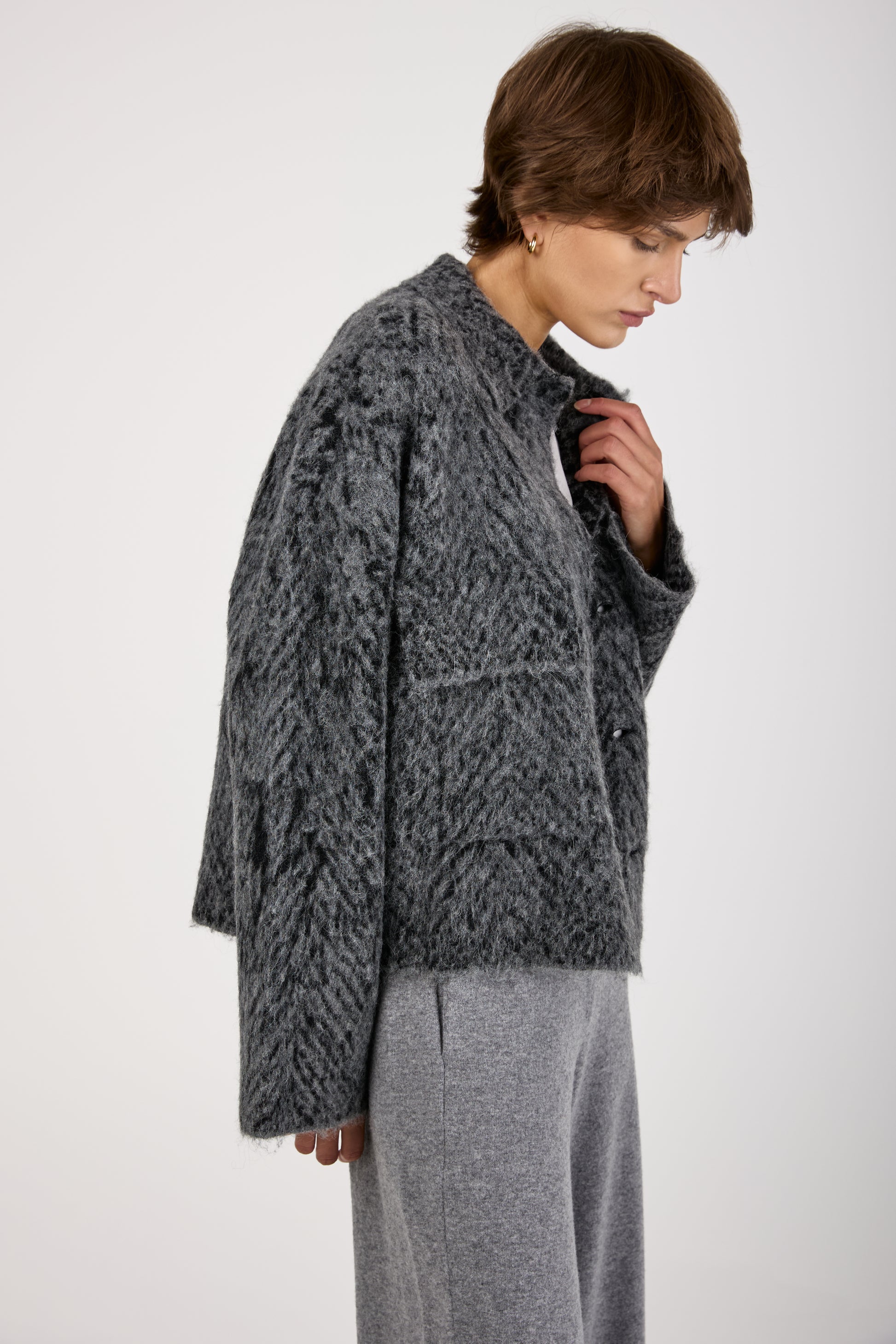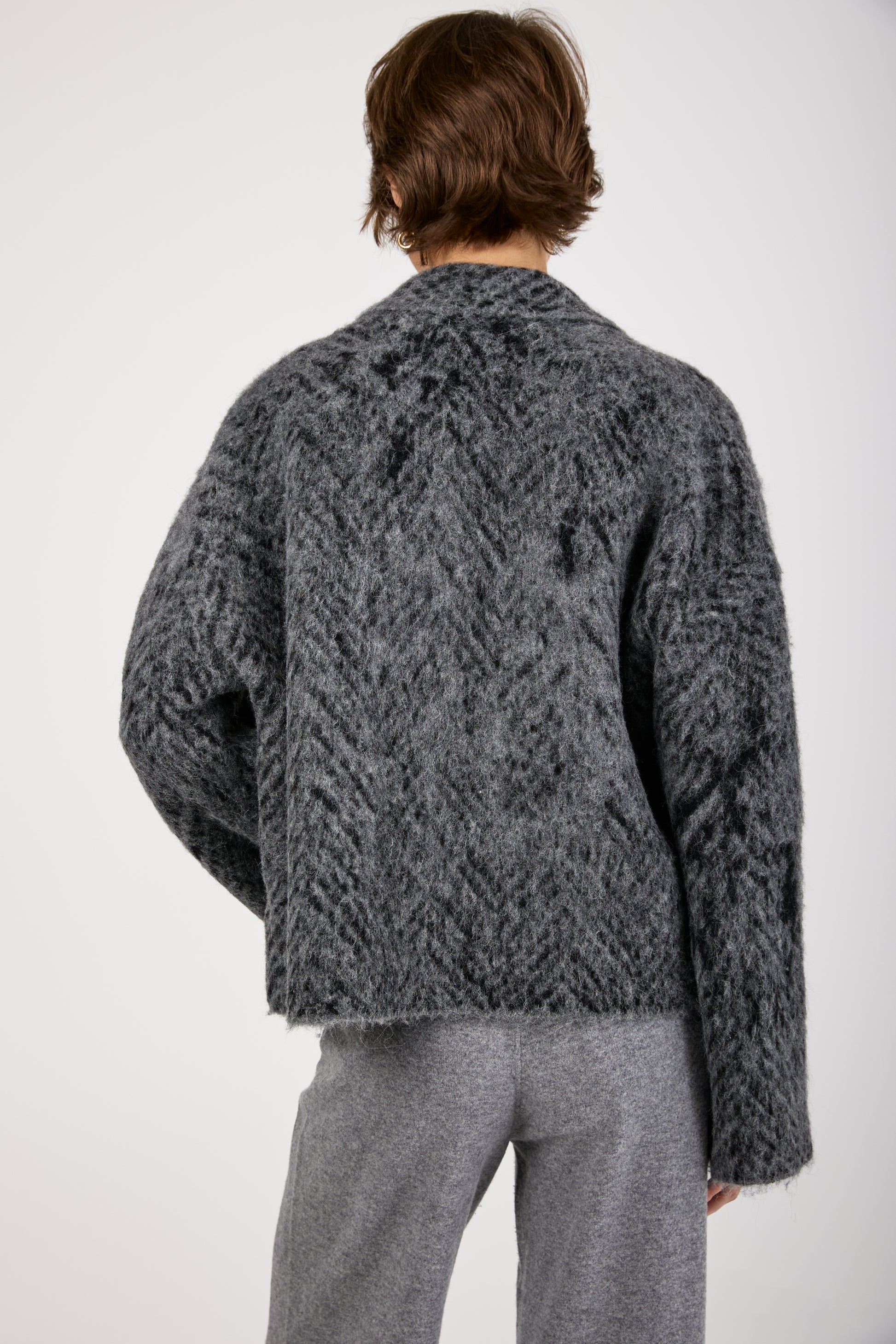 Knit Jacquard Chevron Jacket in Grey Black