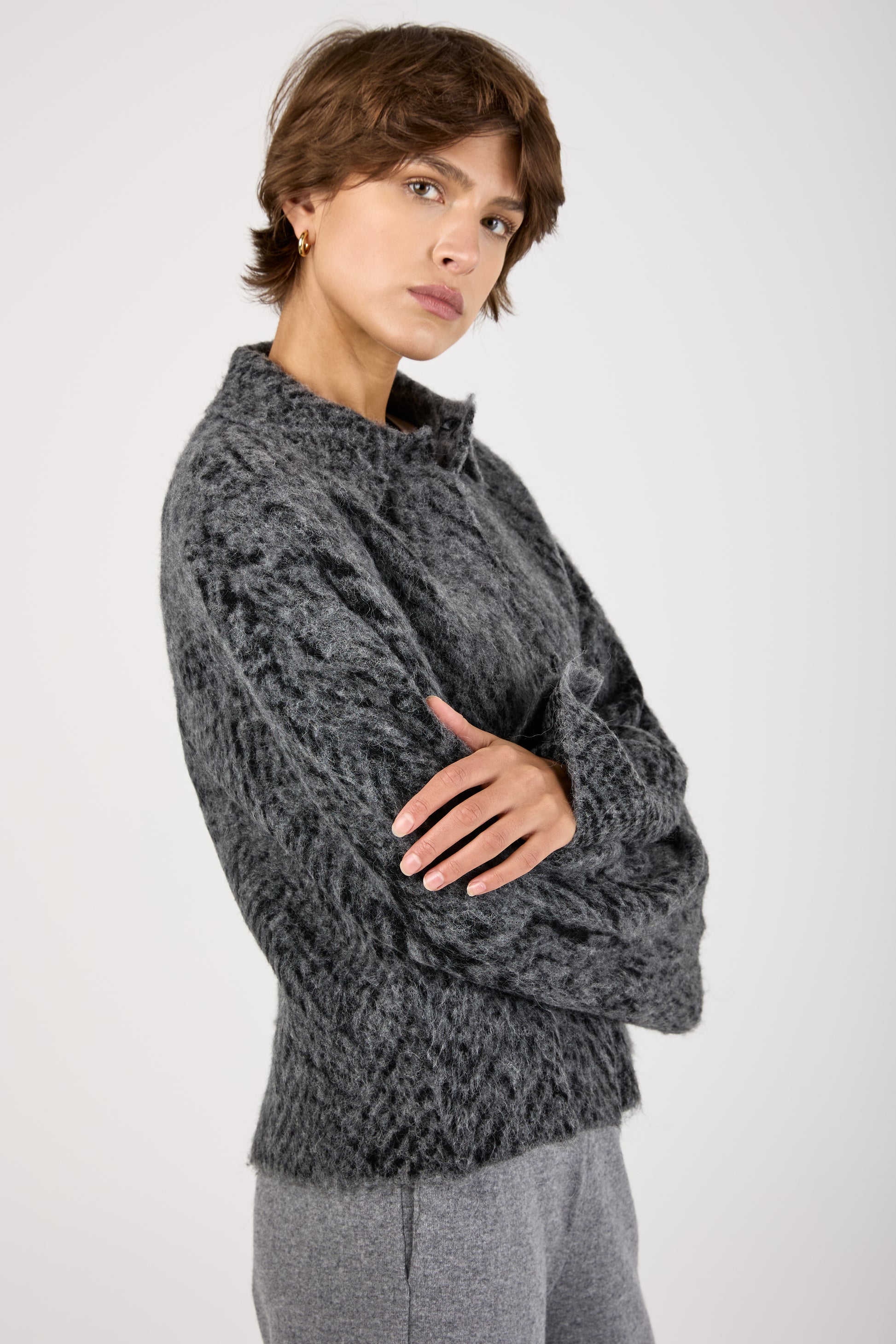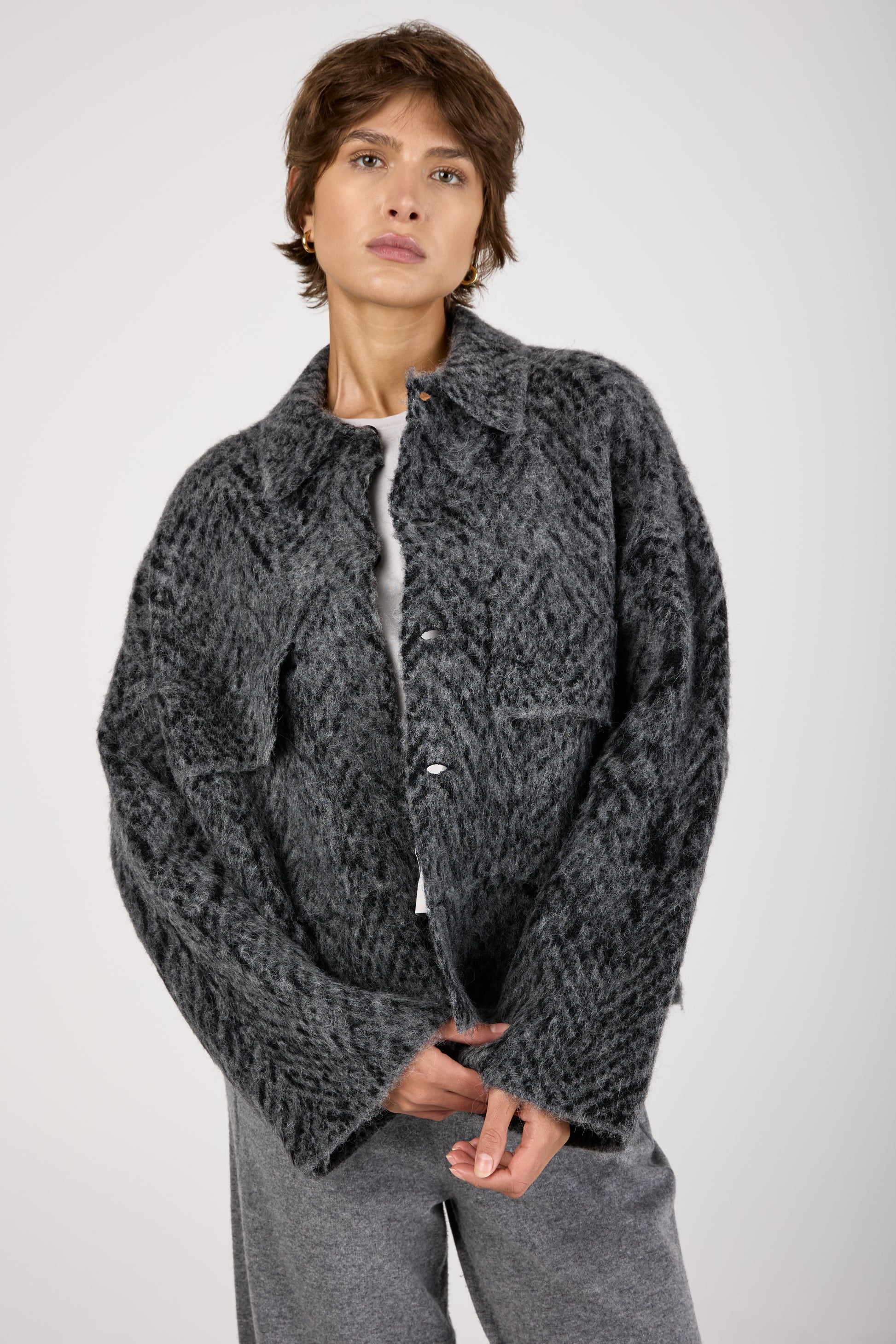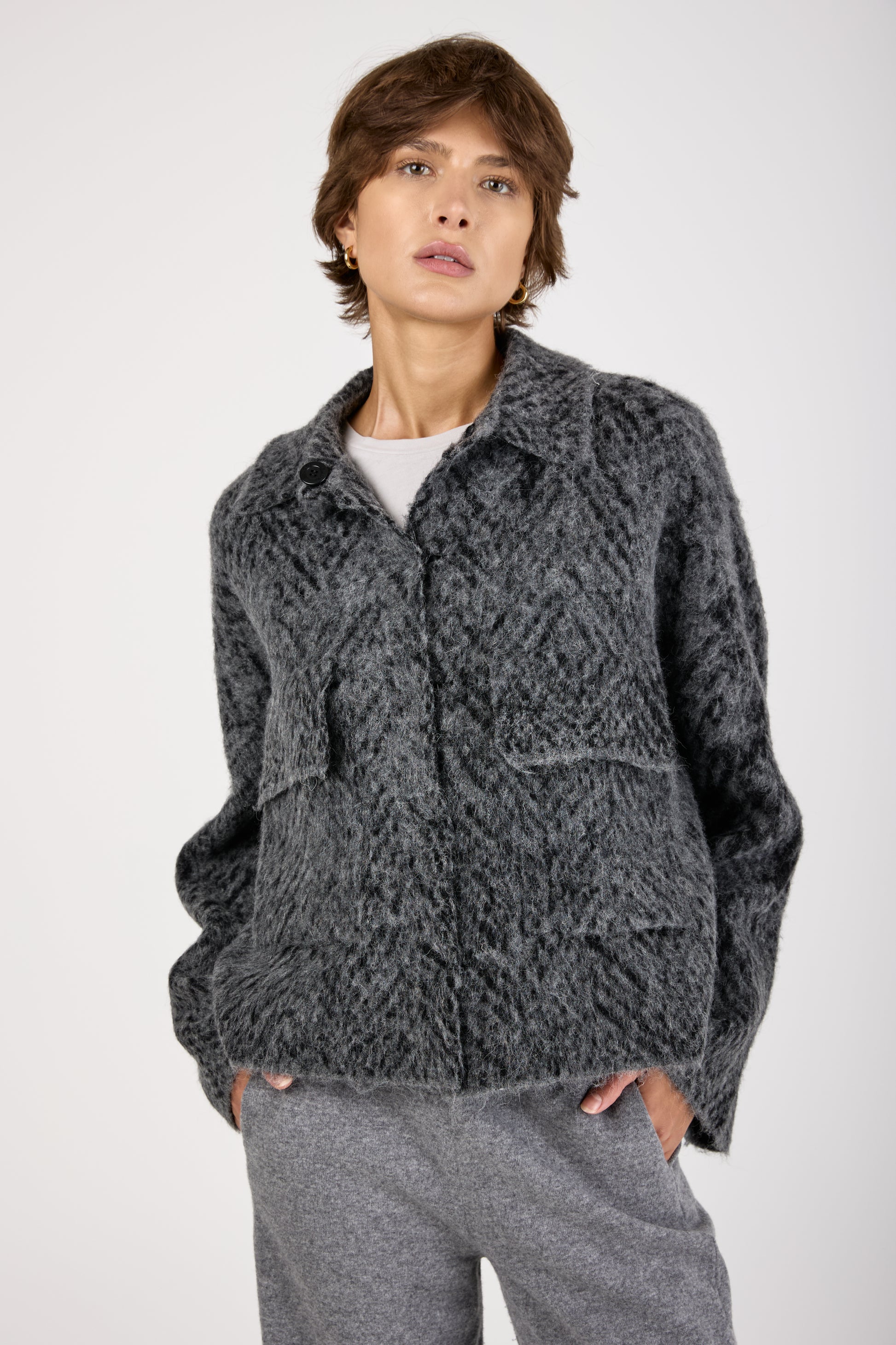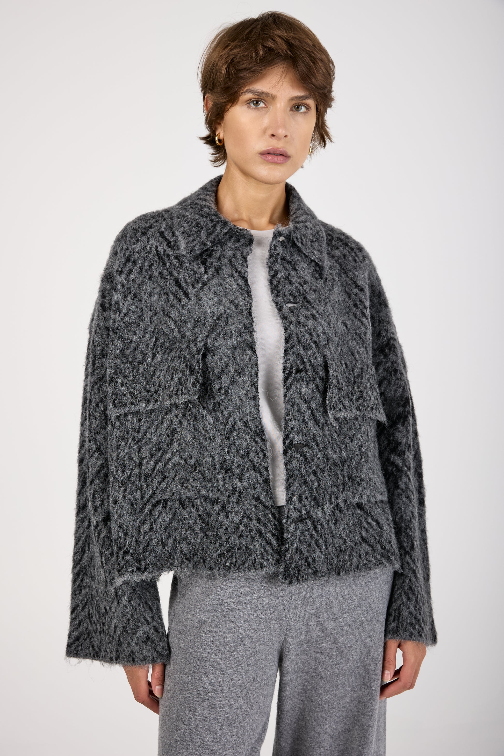 Knit Jacquard Chevron Jacket in Grey Black