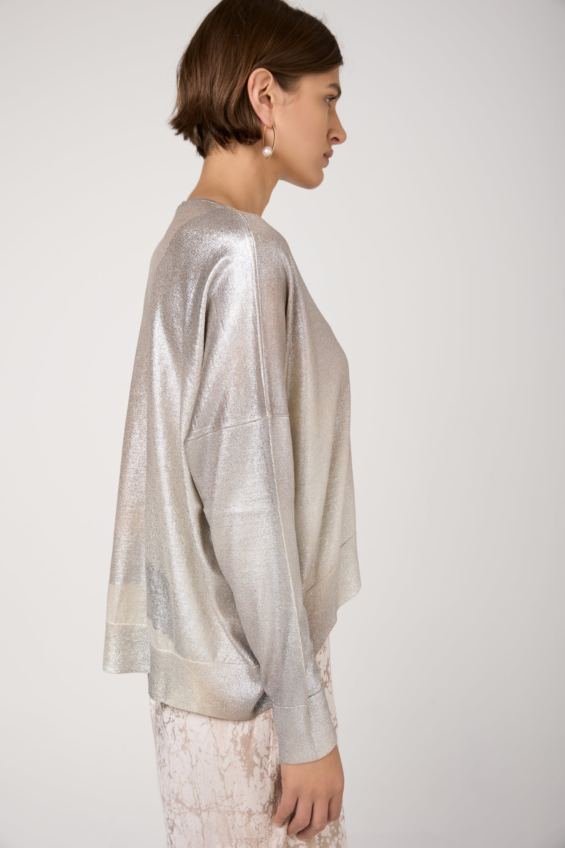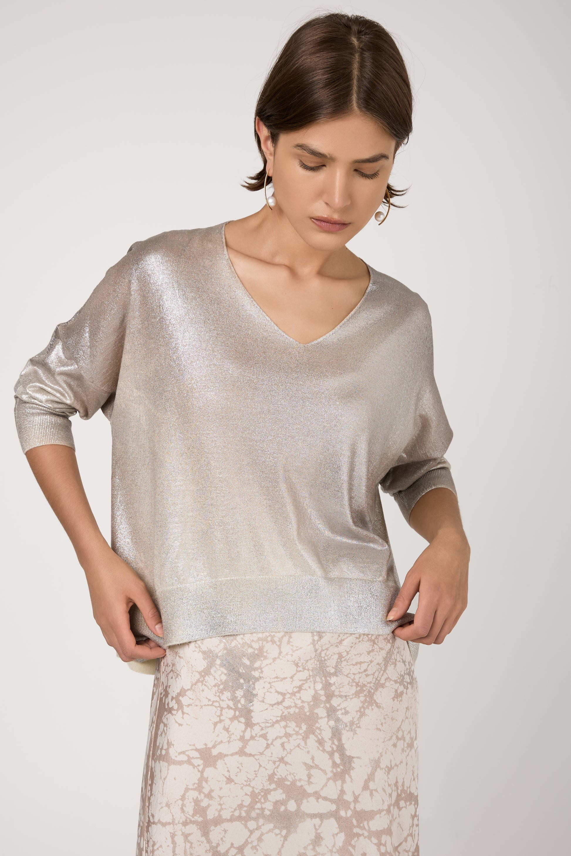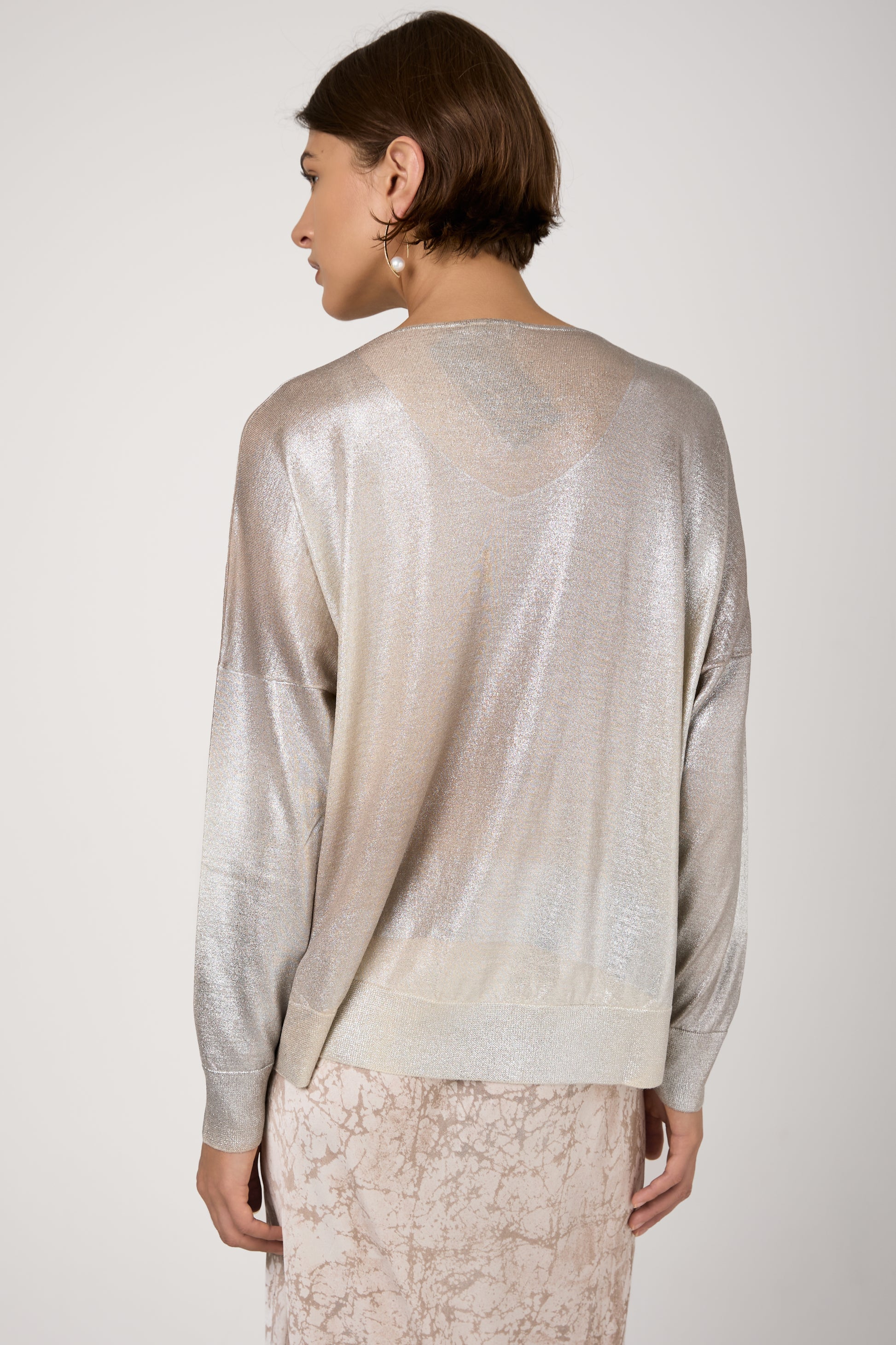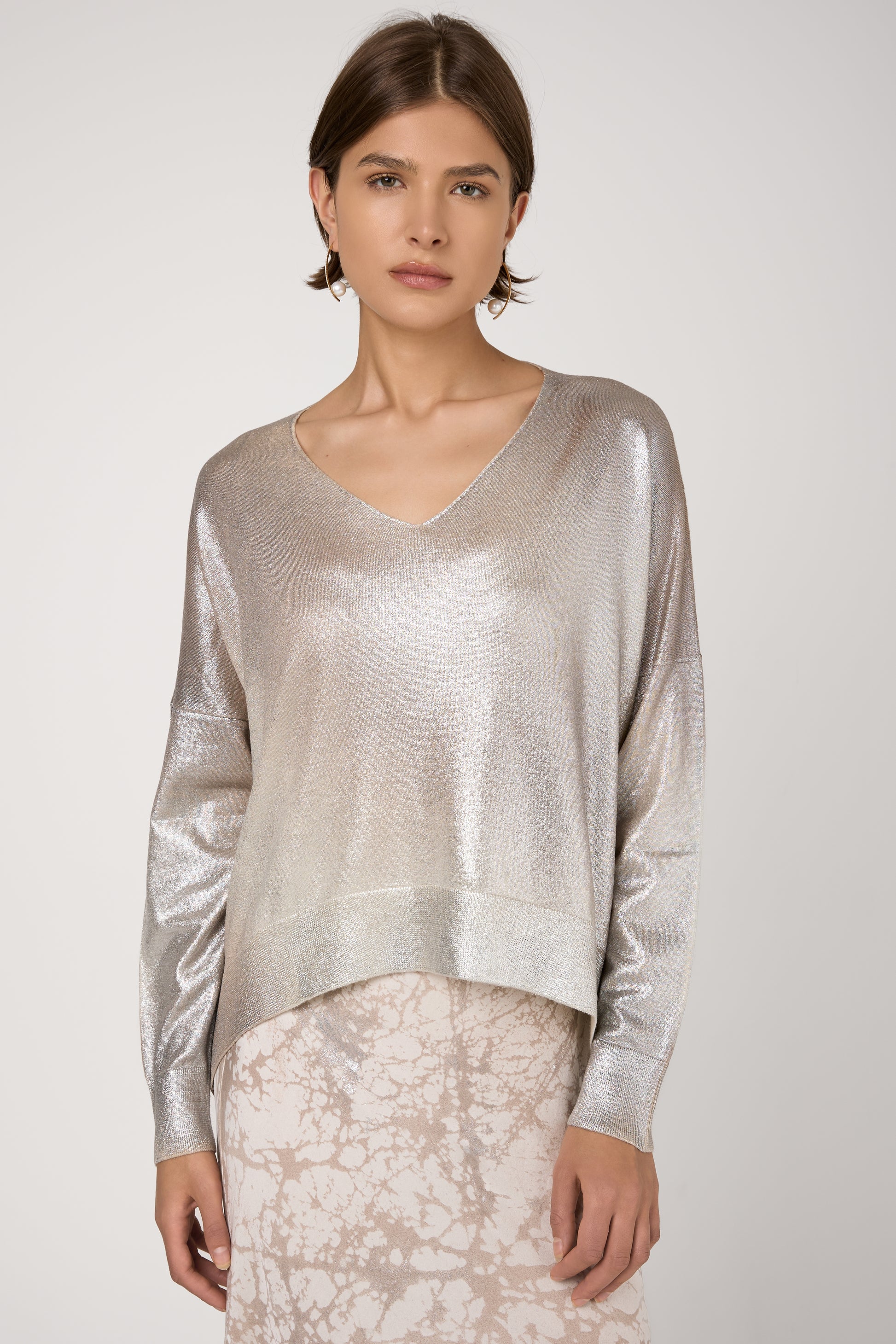 Laminated Cashmere Silk V-Neck Pullover in Noce Moscata