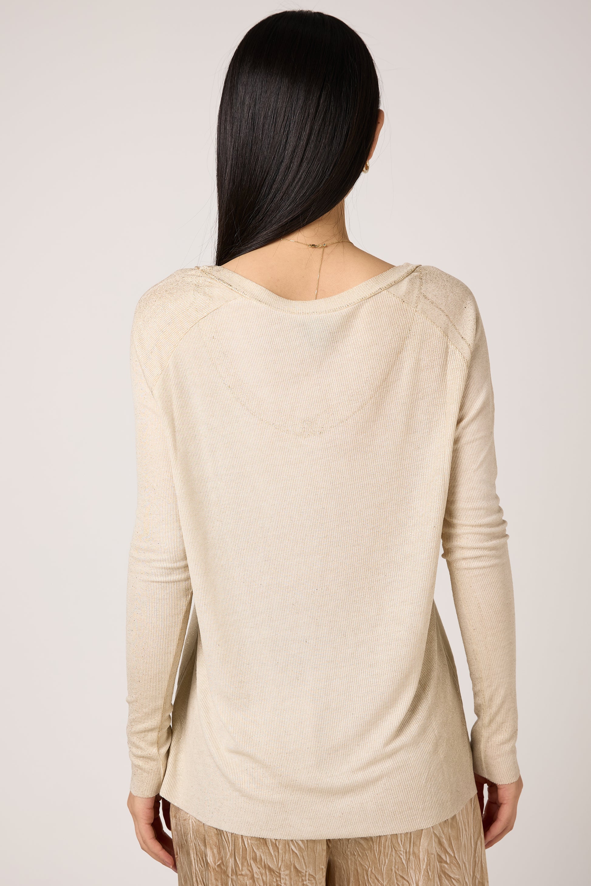 Laminated Ribbed Long Sleeves T-Shirt in Vaniglia